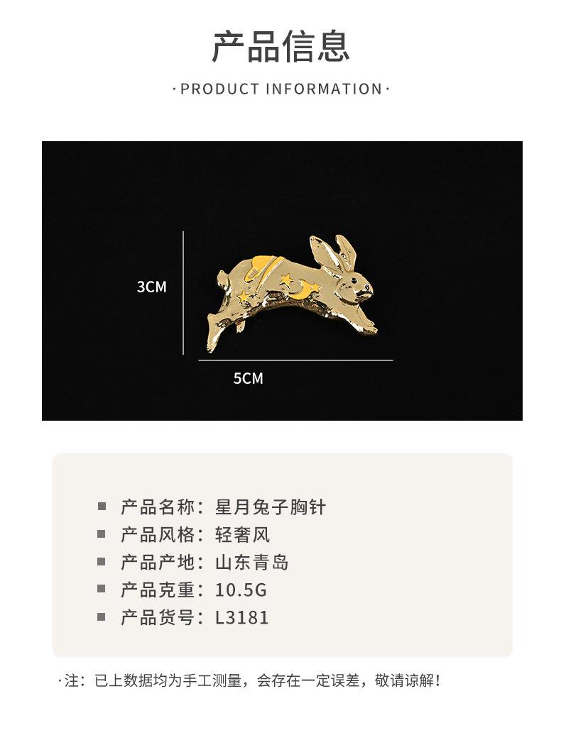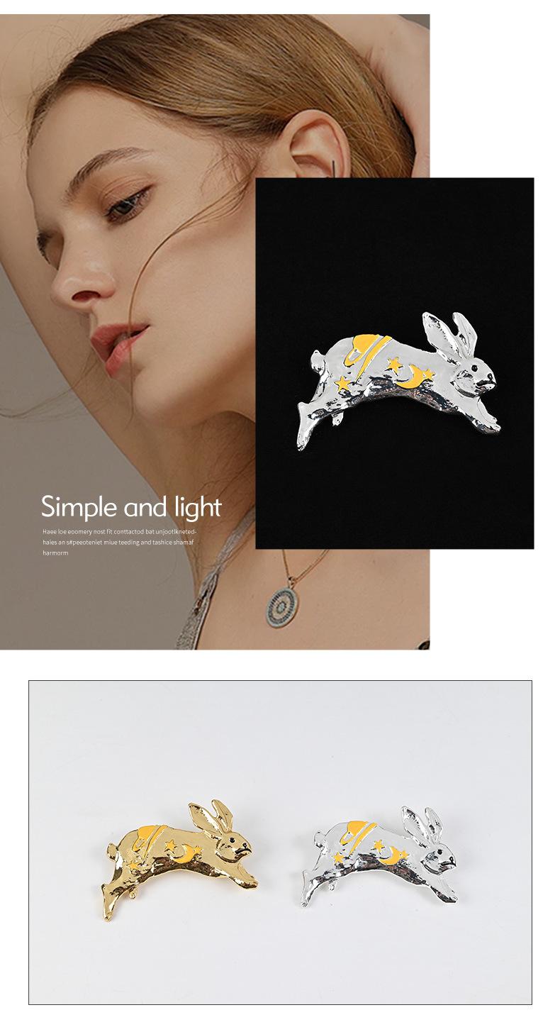 Broche de metal con forma de conejo, estilo retro, simple, con forma de estrella y luna, accesorios de ramillete con personalidad