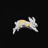 Golden star and moon rabbit brooch, Silver star and moon rabbit brooch