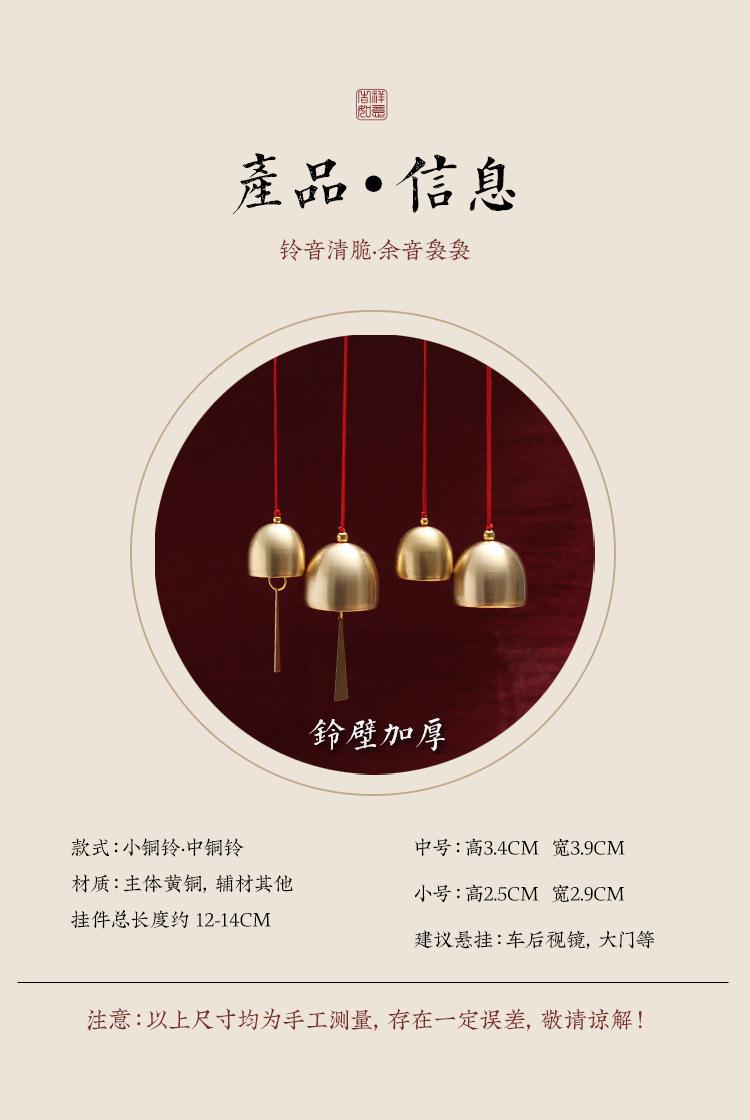 Campana Pequeña de Cobre Puro Metal Campana de Viento Accesorios de Decoración Hogar Tienda Adornos Colgantes Timbre de Puerta Seguro Decoración Regalo Colgante para Coche