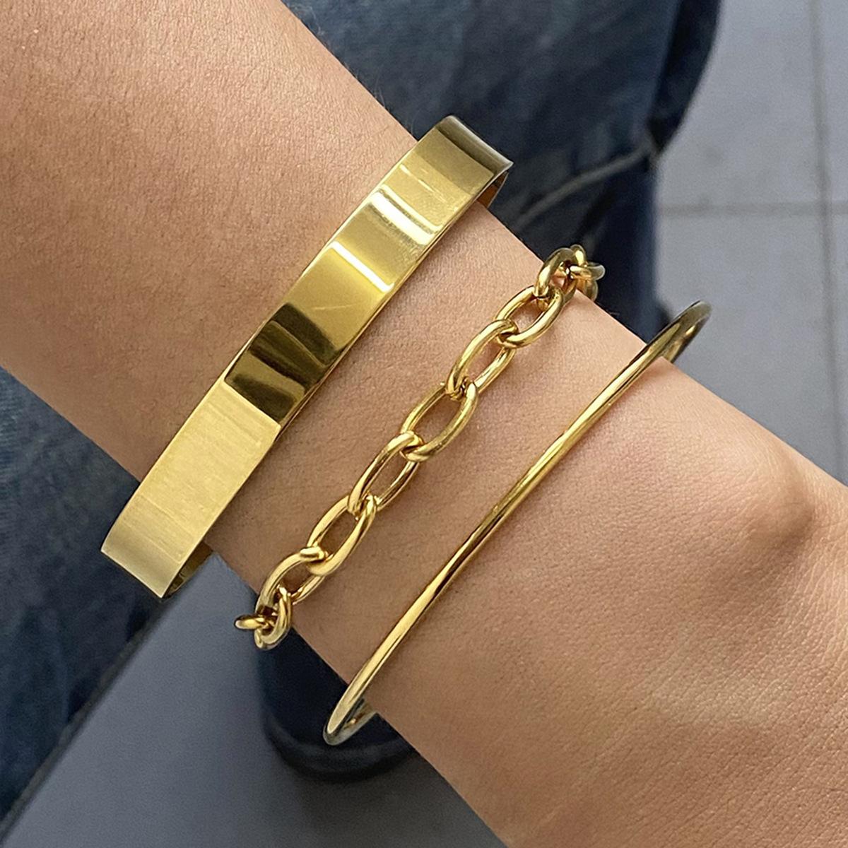 Compra Jieding Pulsera Abierta Dorada de Acero Inoxidable Europeo y Americano Sentido Avanzado Pulsera Acero Titanio Sin Color Joyería de Mano Transfronteriza al por mayor en Joom.pro