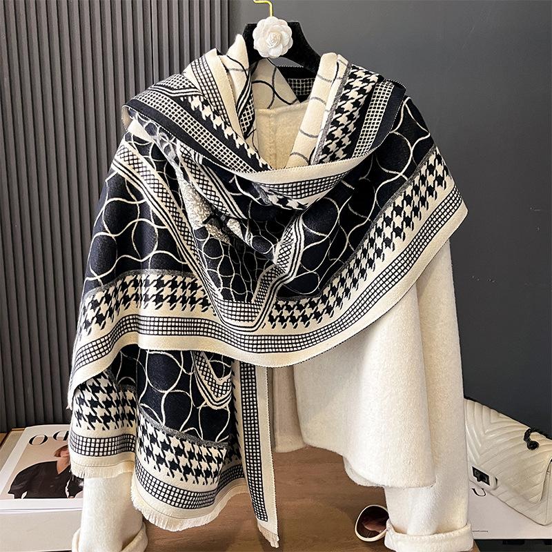 Bufanda cálida de imitación de cachemira para mujer, estilo europeo y americano, elegante chal de doble cara que combina con todo, otoño e invierno, 2024