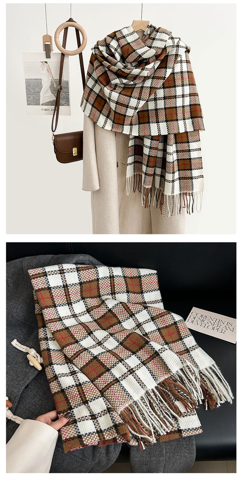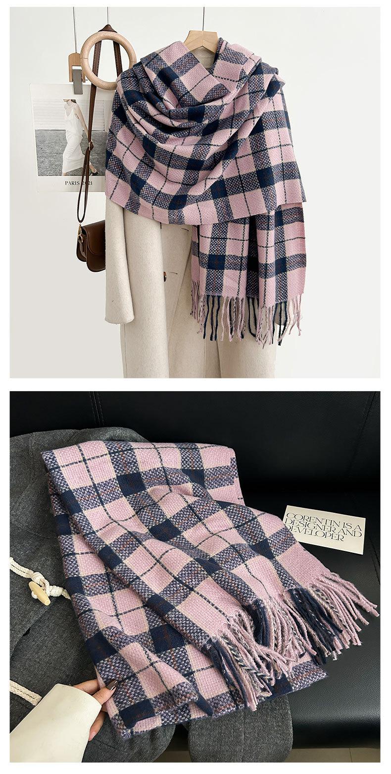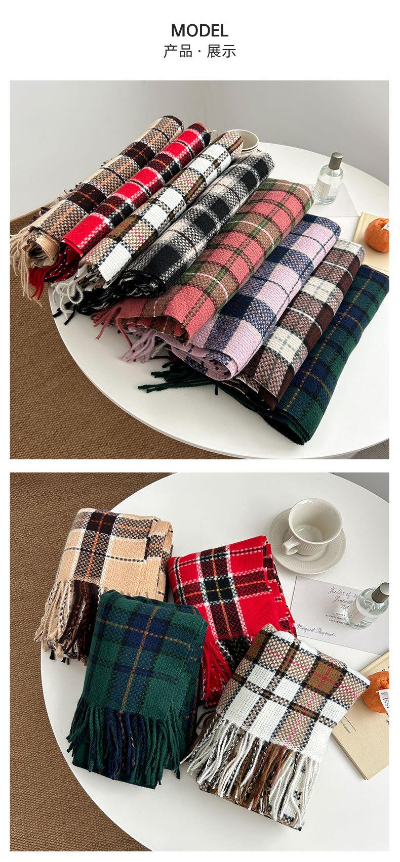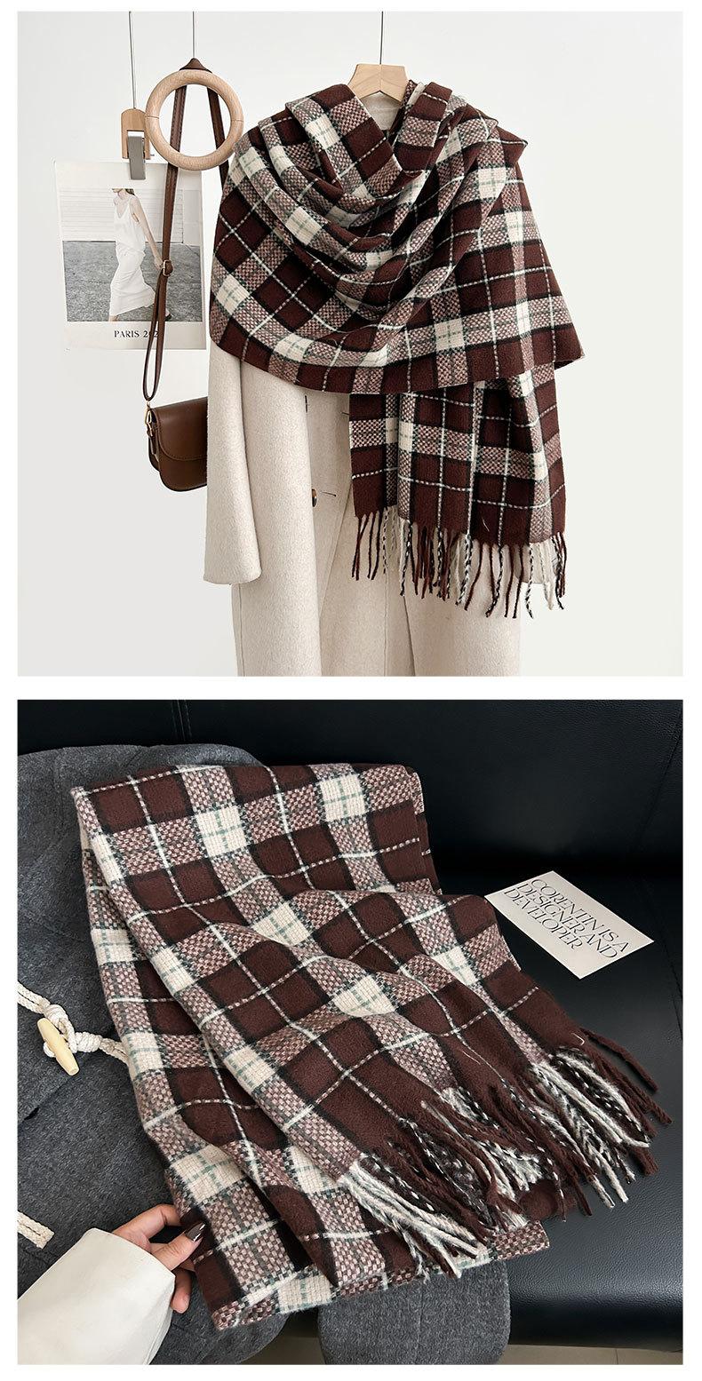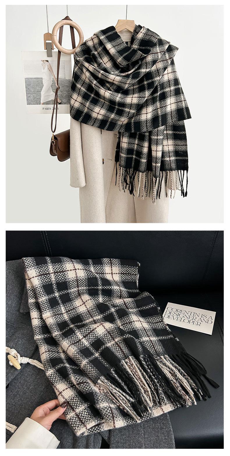 Bufanda tejida a cuadros de alta gama de otoño e invierno, estilo coreano, dulce, elegante, elegante, de cachemira, cálido, con borlas.