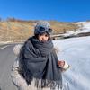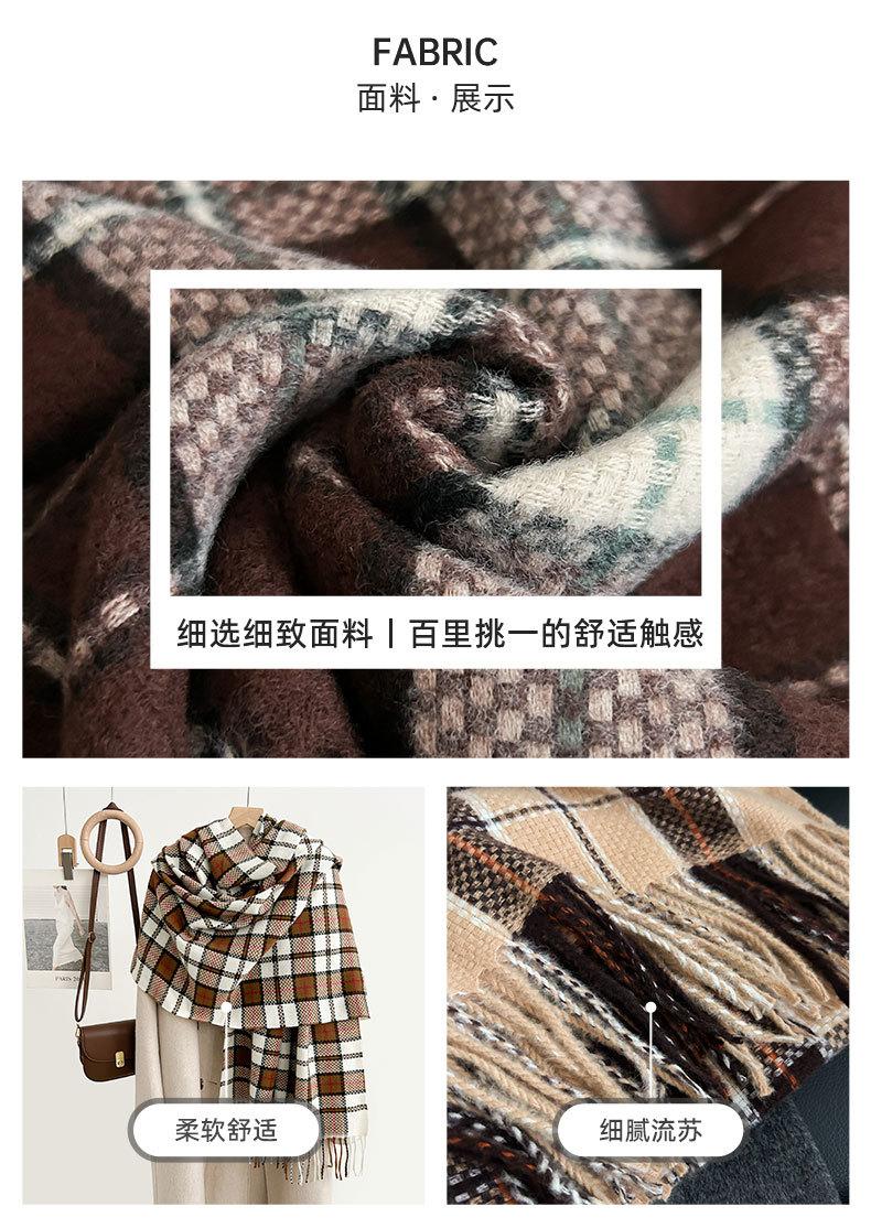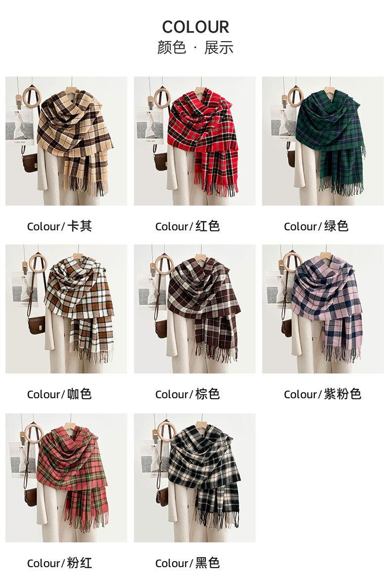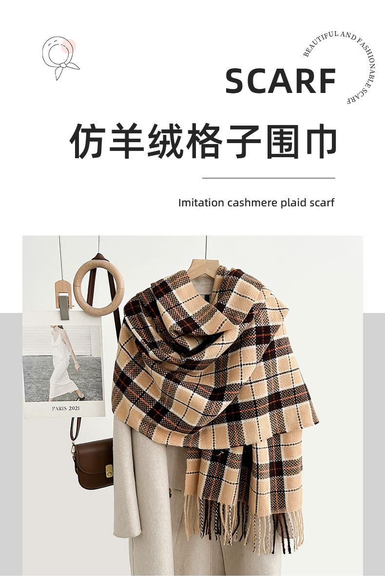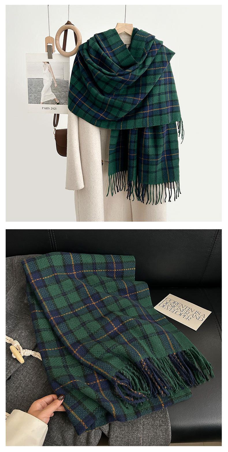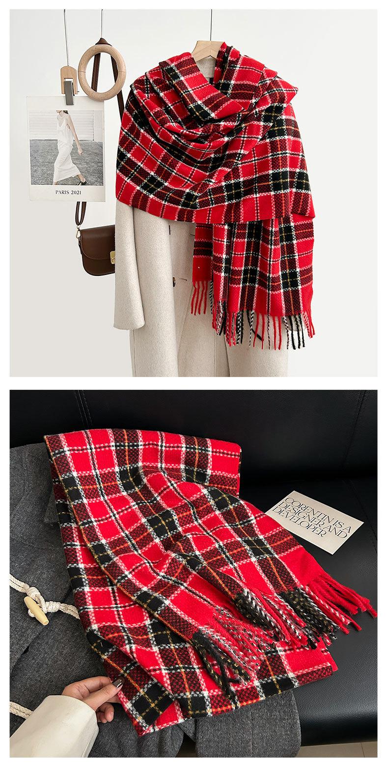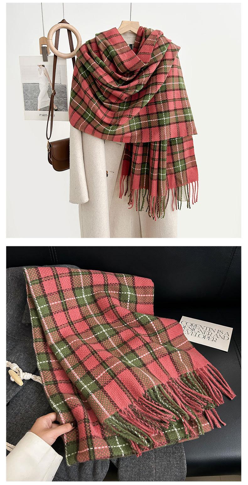 Bufanda tejida a cuadros de alta gama de otoño e invierno, estilo coreano, dulce, elegante, elegante, de cachemira, cálido, con borlas.