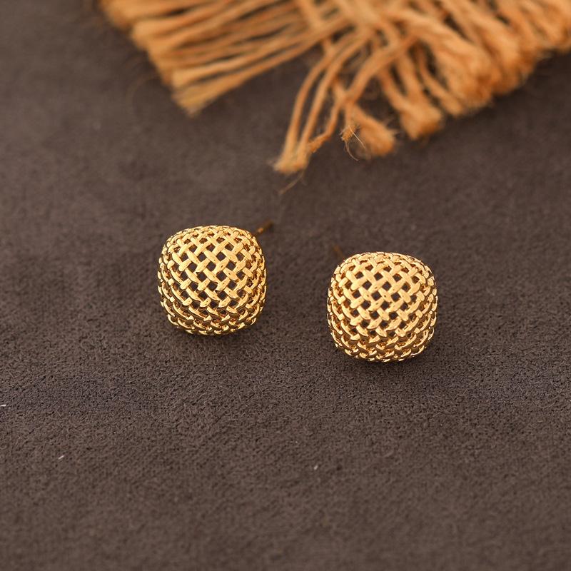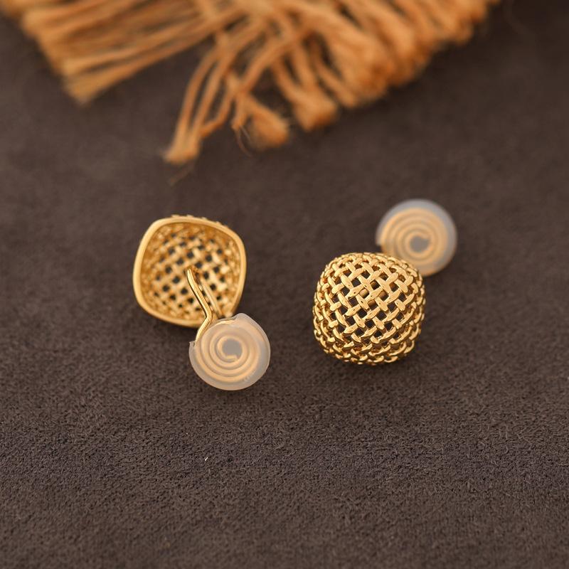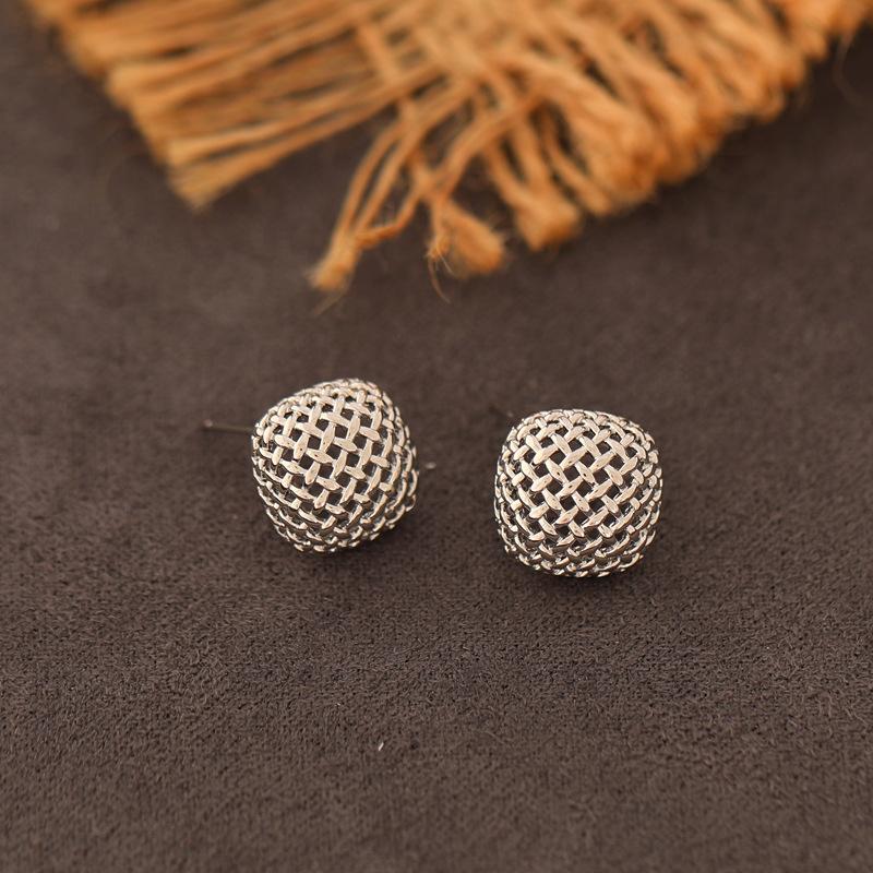 Otoño e Invierno Nuevo Diseño Metal Minimalista Aretes de Rejilla para Mujer, Aretes de Personalidad Versátiles Elegantes al Mayoreo