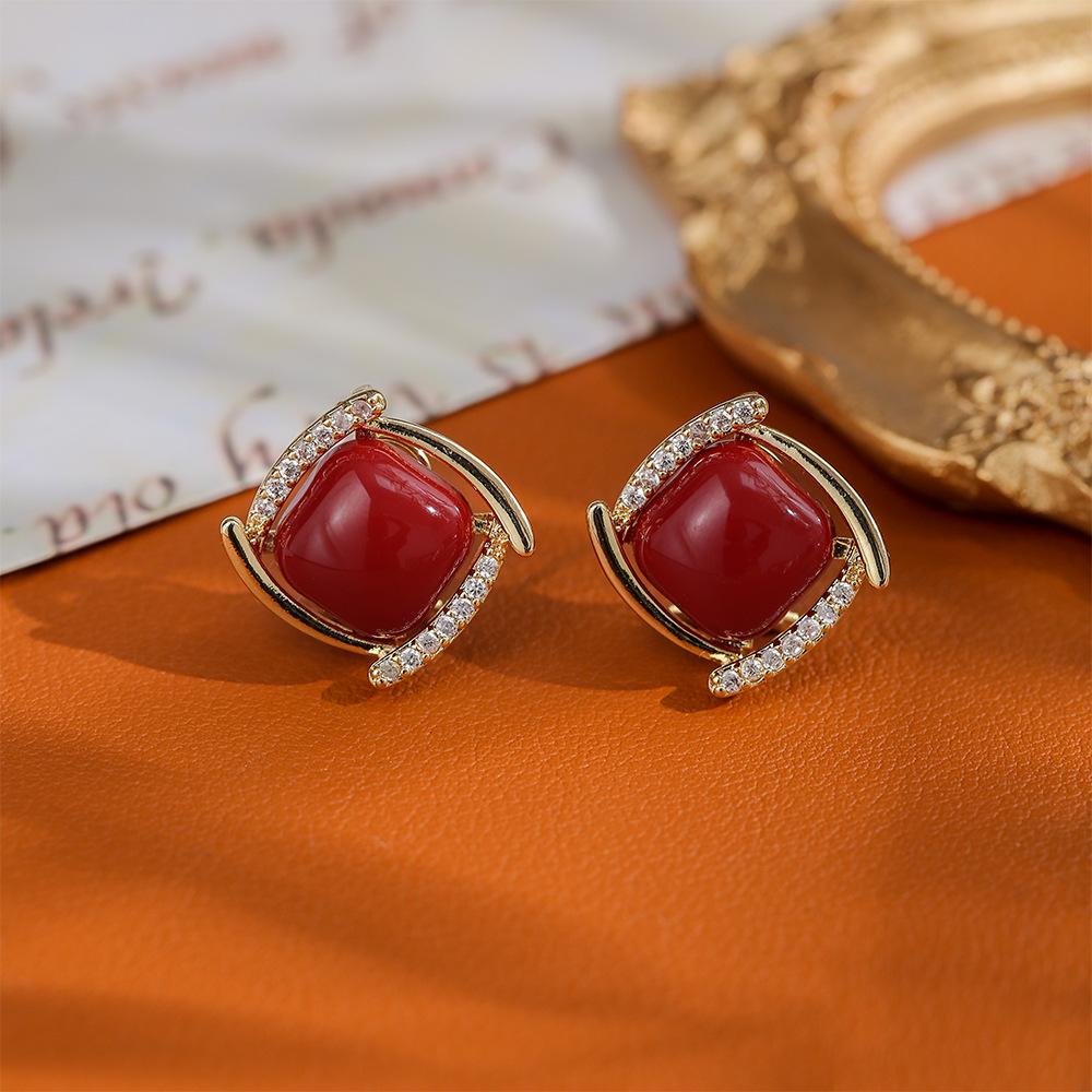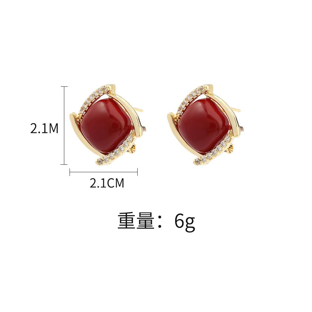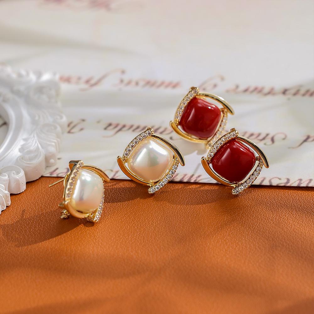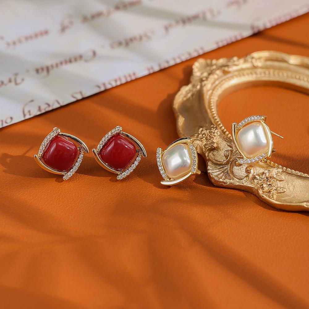 Ankara red pearl zircon stud earrings (s925 silver needle)