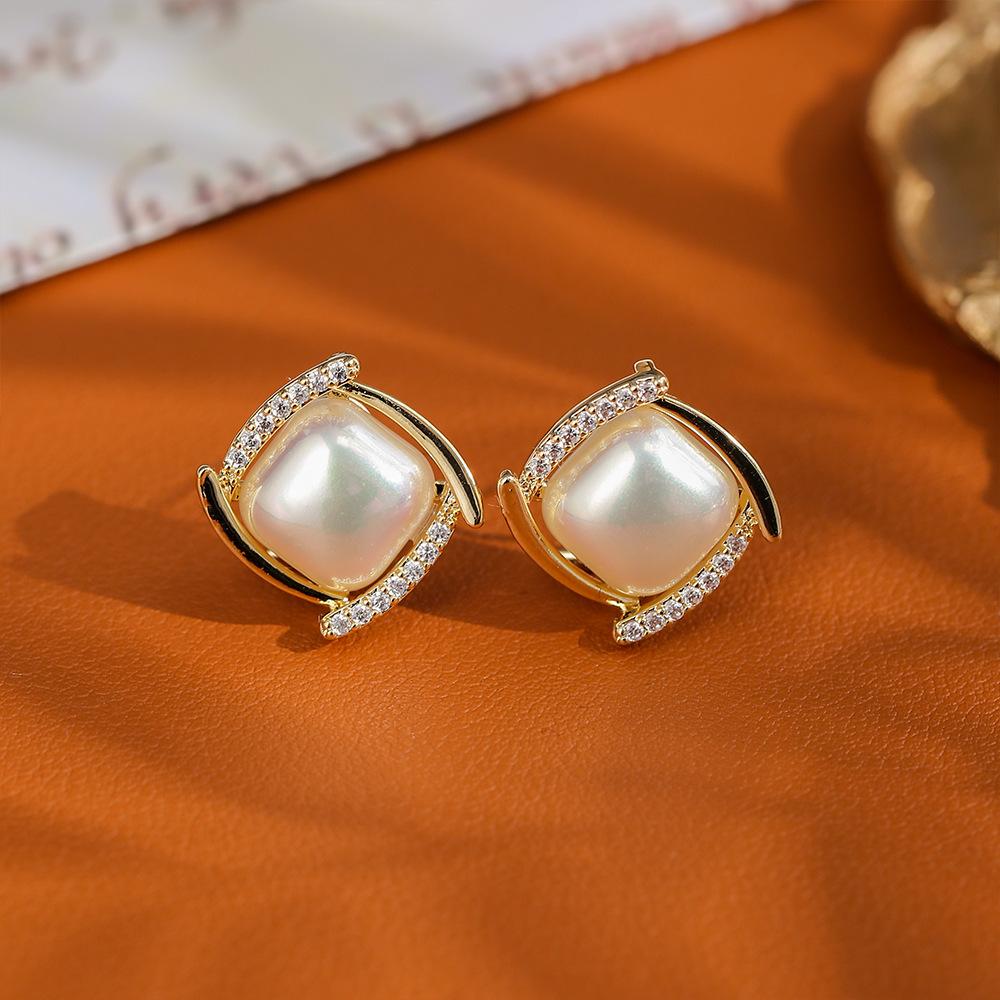 Compra Aretes de Perlas Plaza Roja de Ankara Aguja de Plata Esterlina S925 Micro-incrustados Zirconia Nicho de Alta Gama Combinables Elegantes al por mayor en Joom.pro