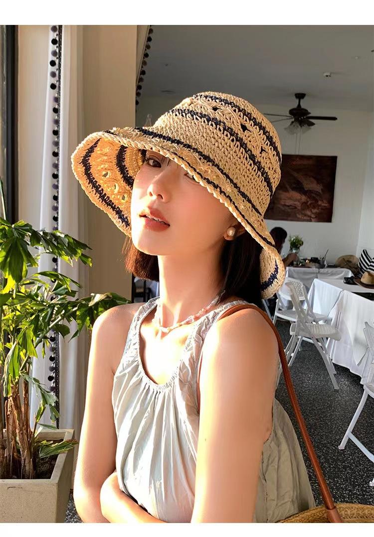 Sombrero de pescador de ala grande para mujer, sombrero de verano hueco, transpirable, protector solar, sombrero de playa, sombrero de sol pequeño para vacaciones, venta al por mayor