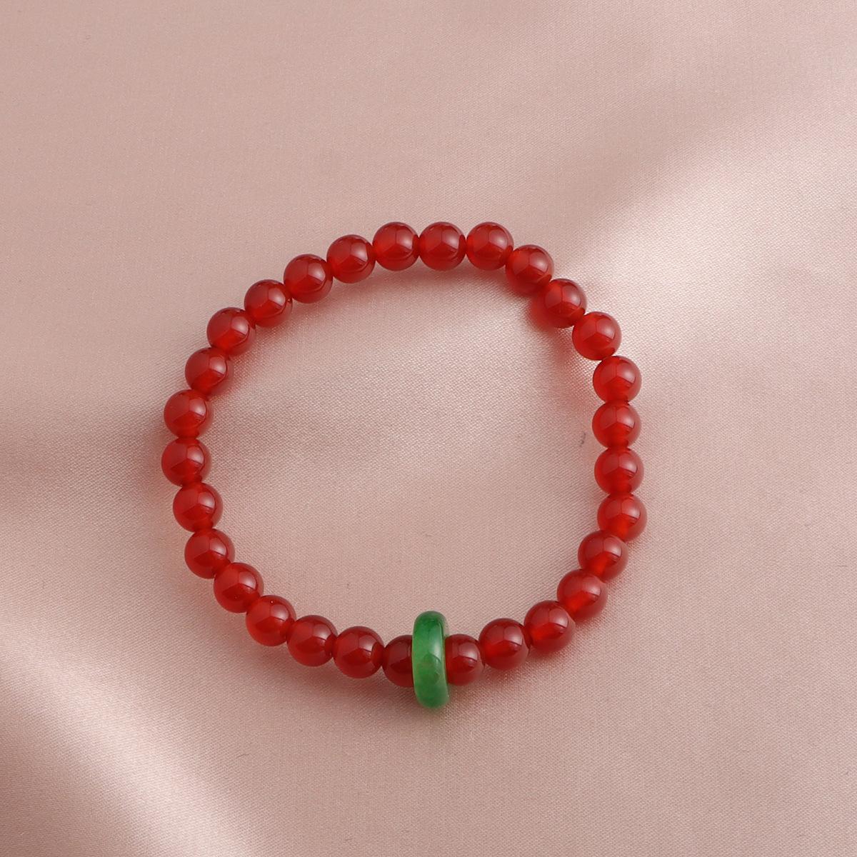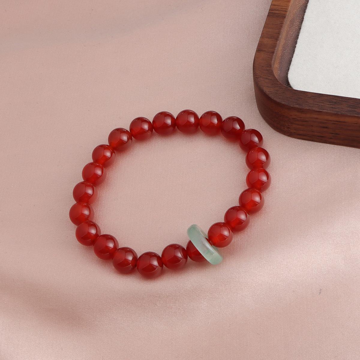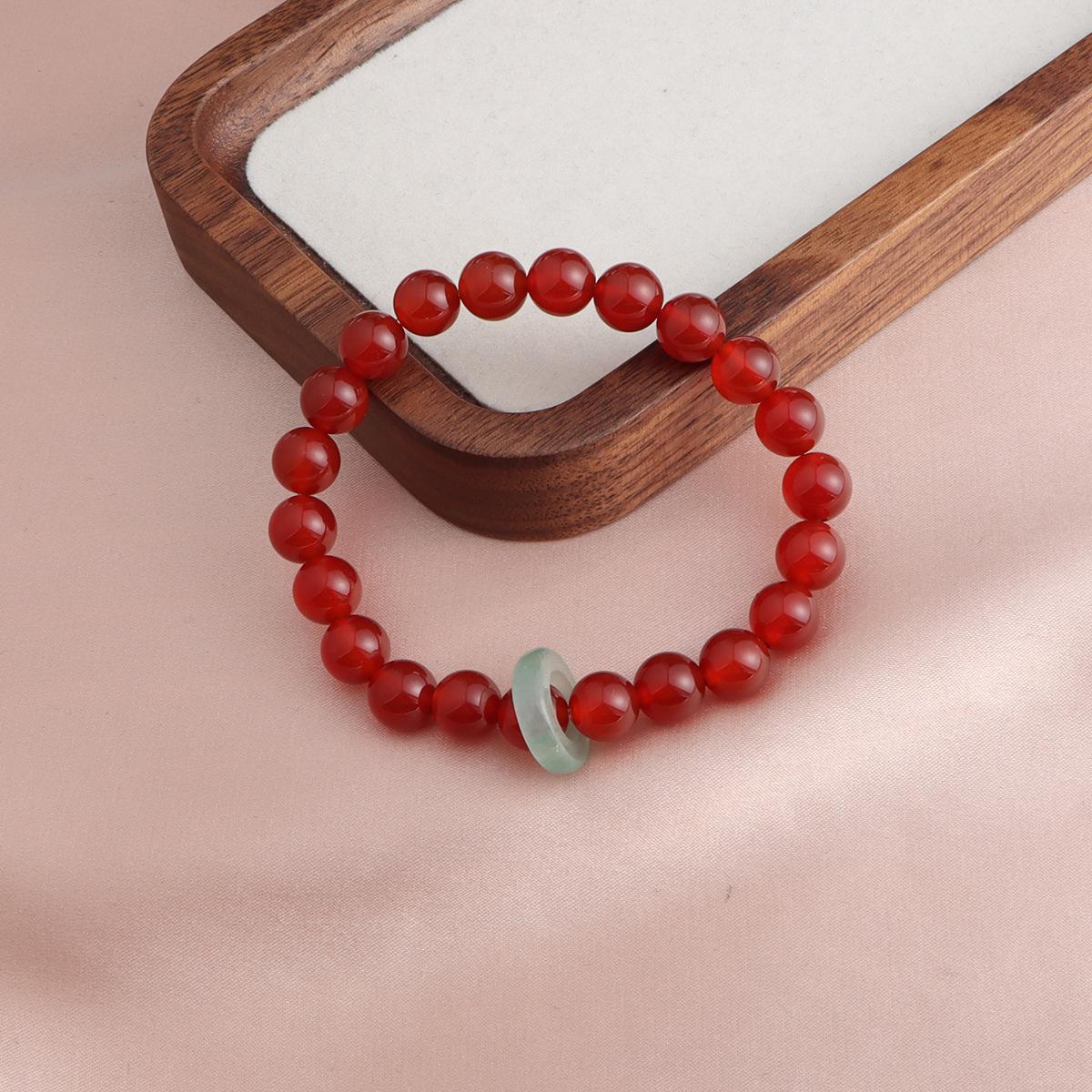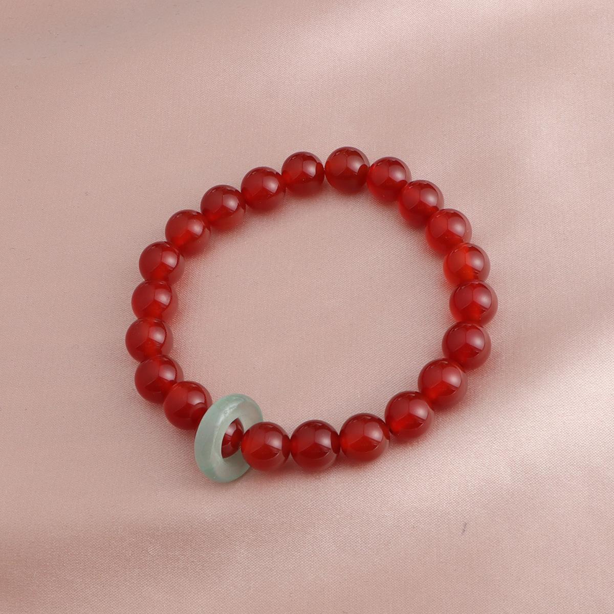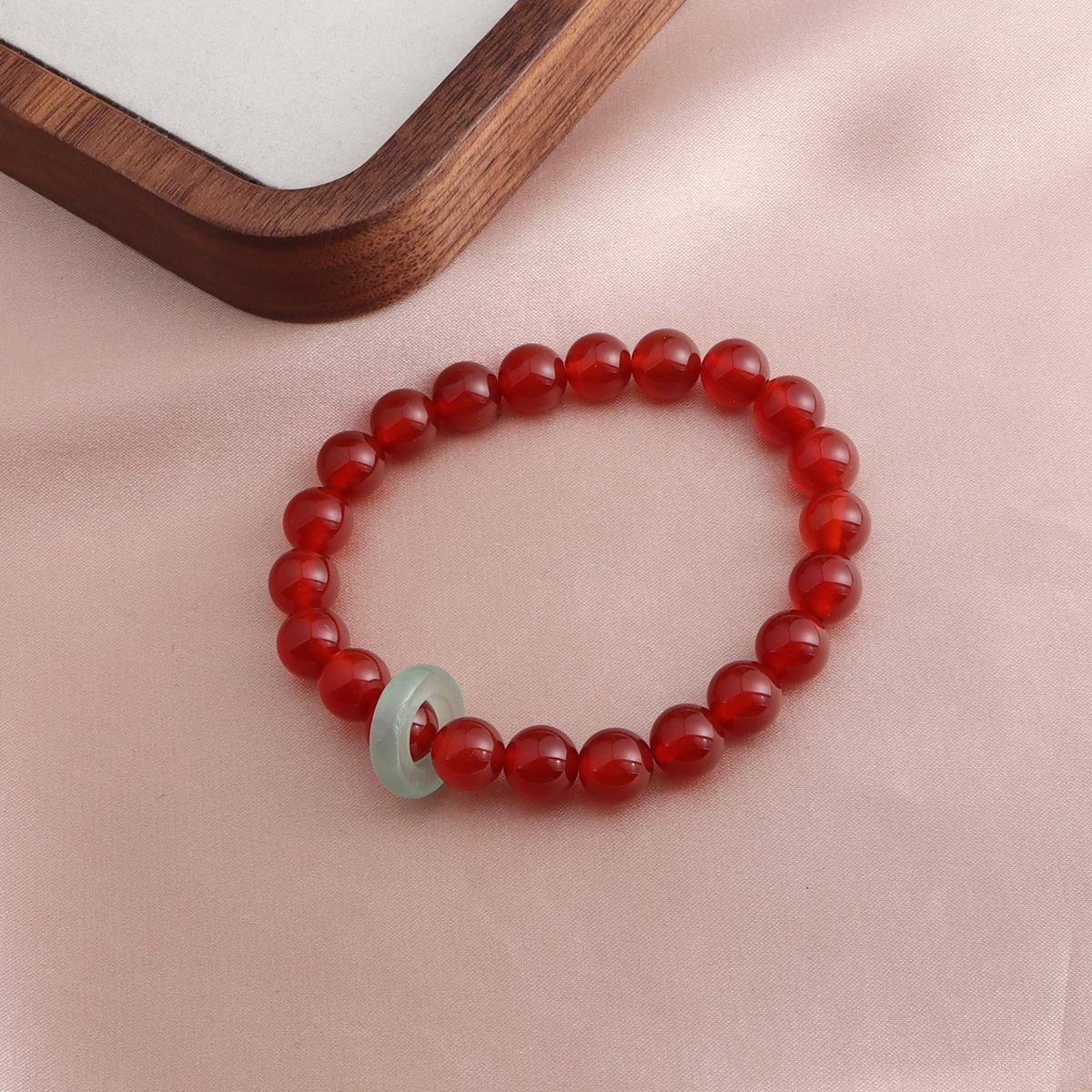 Pulsera China Nueva Ágata Roja Natural Anillo Giratorio Pulsera de Cristal Versátil Pulsera de un Círculo Moda Viajero Estilo Nacional Versátil