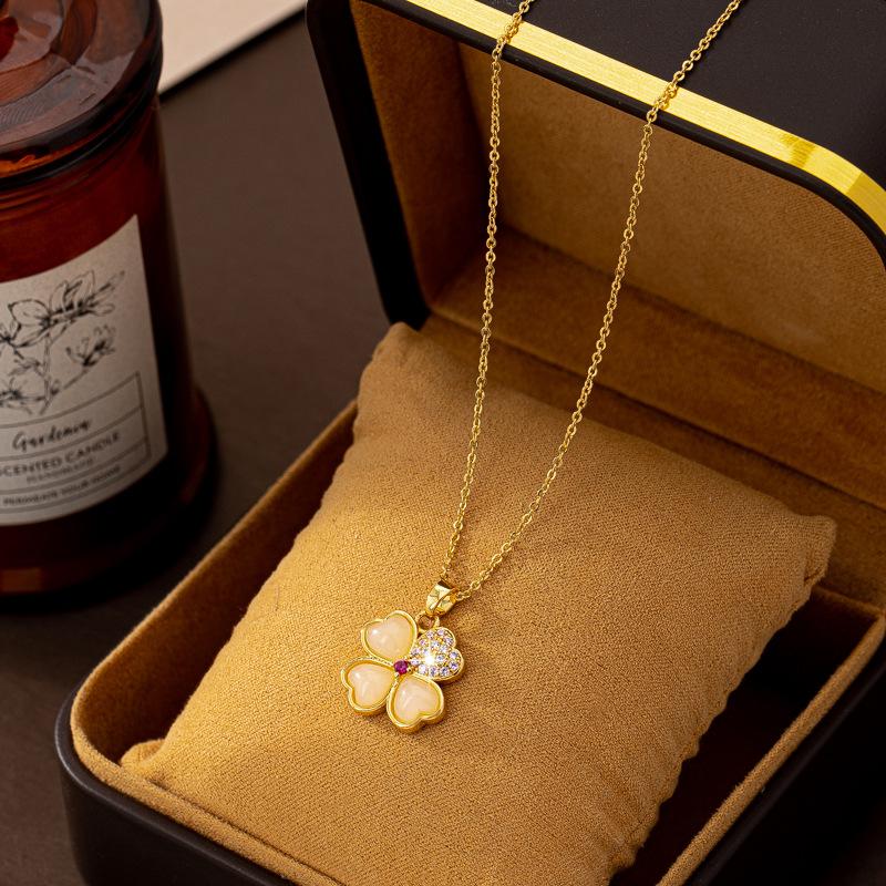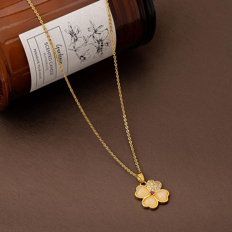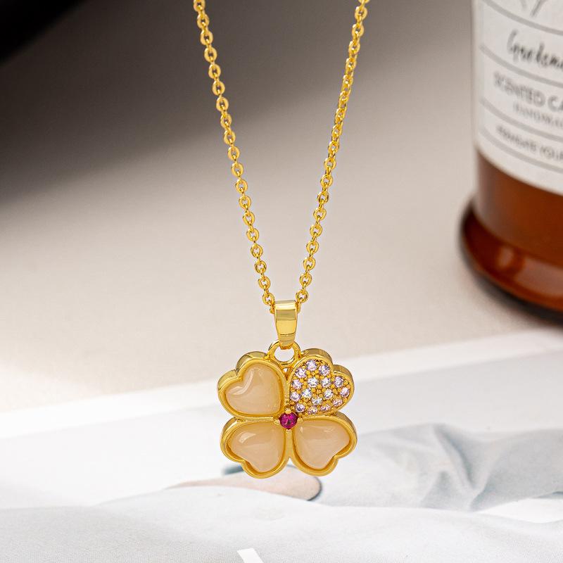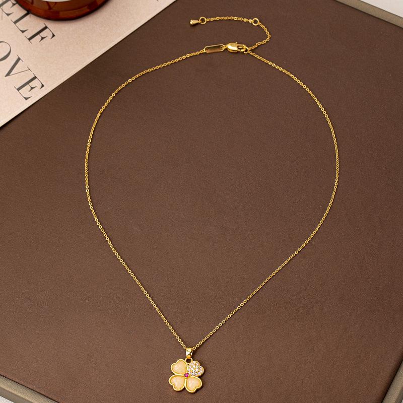 2025 Nuevo Collar con Colgante de Trébol de Cuatro Hojas de Circonita Cobre Chapado en Oro Real de Lujo Ligero Cadena Clavicular de Moda de Trébol para Mujer