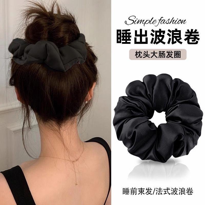 Anillo para el cabello con forma de almohada estilo Fan Bingbing, nuevo y elegante, estilo francés, grande, de ala ancha, con forma de salchicha gorda, de satén, para dormir, accesorios para el cabello