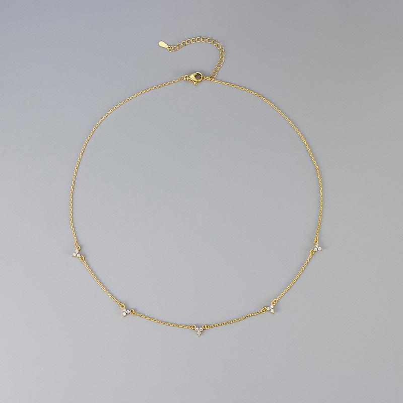 Nuevo collar triangular geométrico con diseño de tres circonitas microincrustadas transfronterizas europeas y americanas, exquisito, dulce, mini, elegante, de moda para mujer