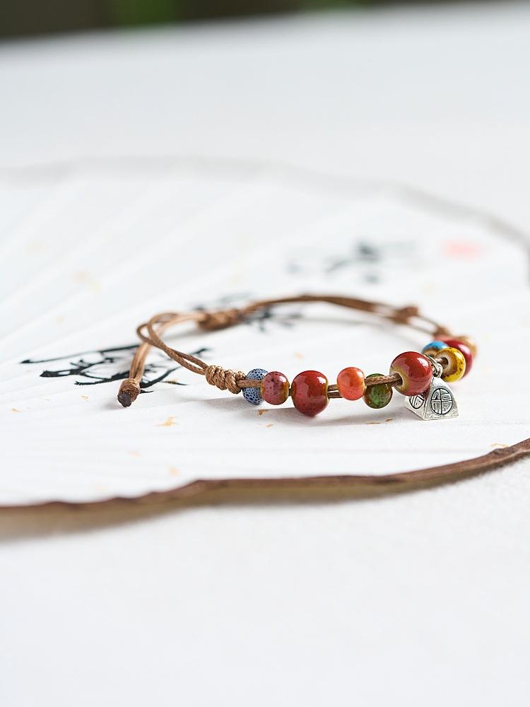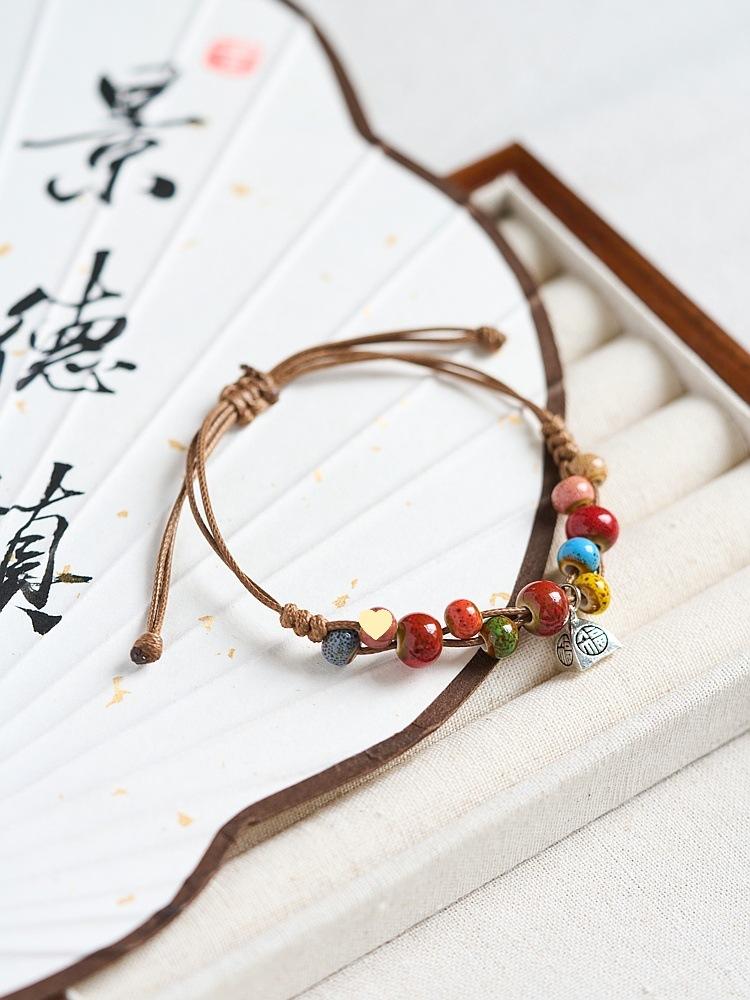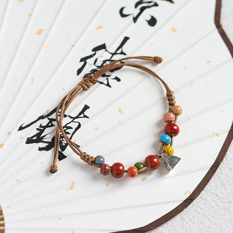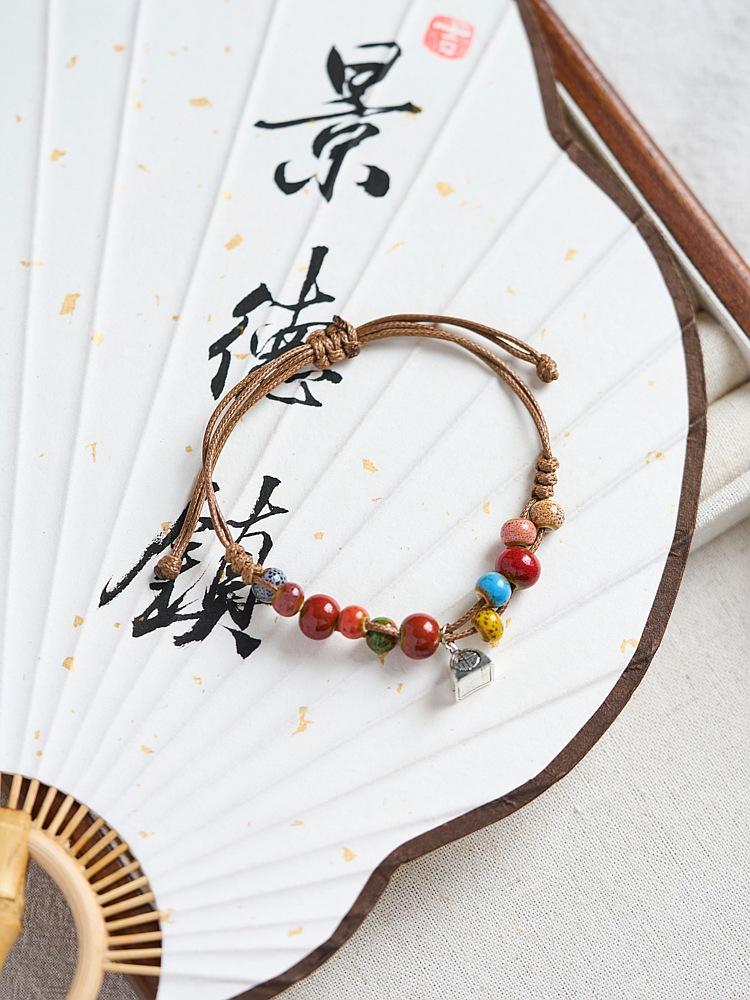 Pulsera de Cerámica de Jingdezhen Regalo para Niñas Nueva China Antigua con Cuentas Joyería para Estudiantes Tejida a Mano Fresca