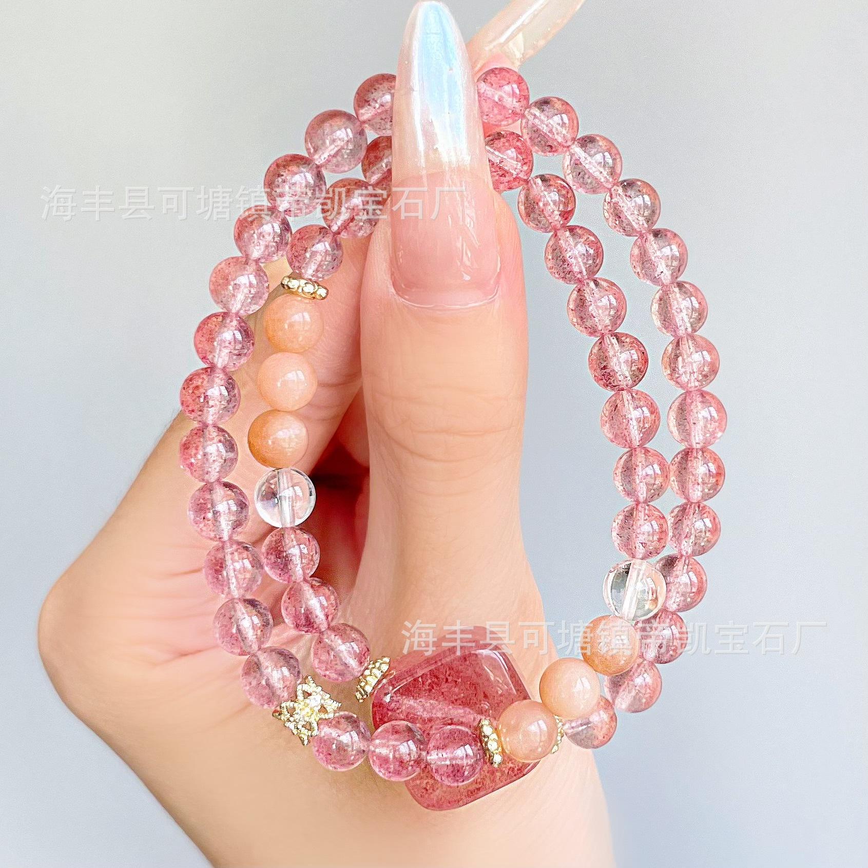 Compra Pulsera de Cristal de Fresa DIY Hecha a Mano Cuentas al por Mayor Pulsera de Cristal Natural Joyería Popular Nueva Pulsera de Cristal al por mayor en Joom.pro
