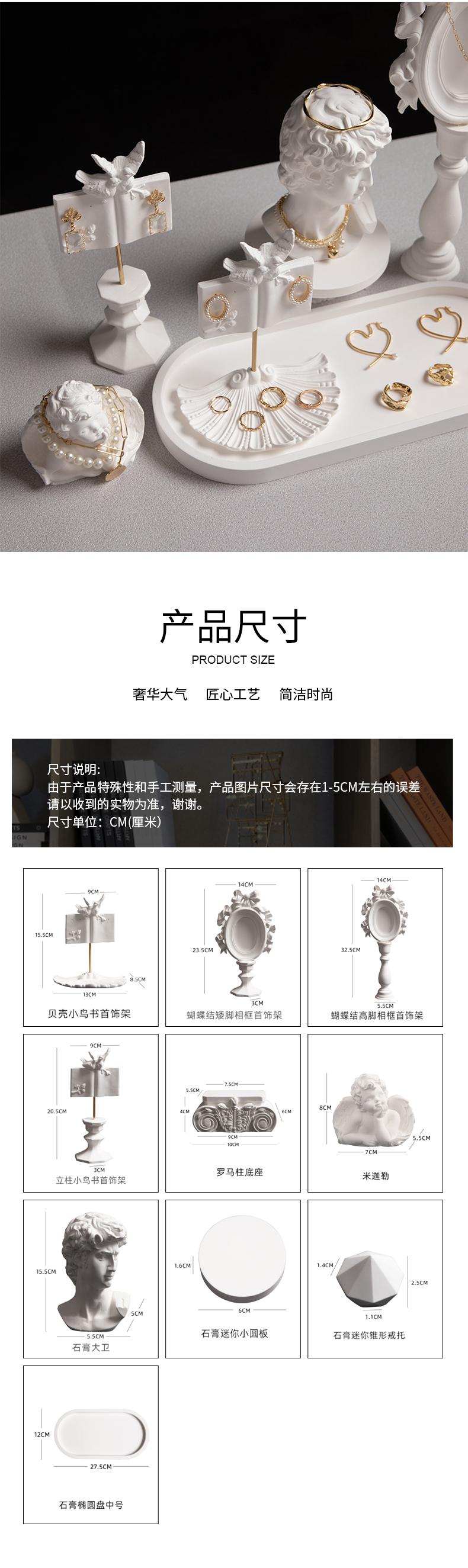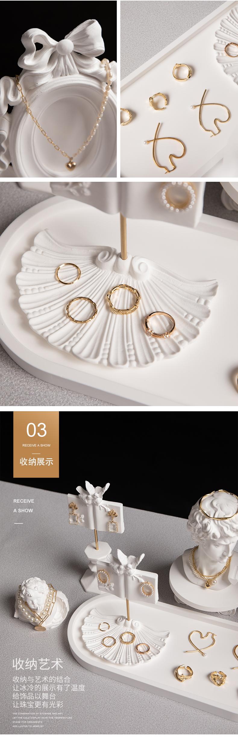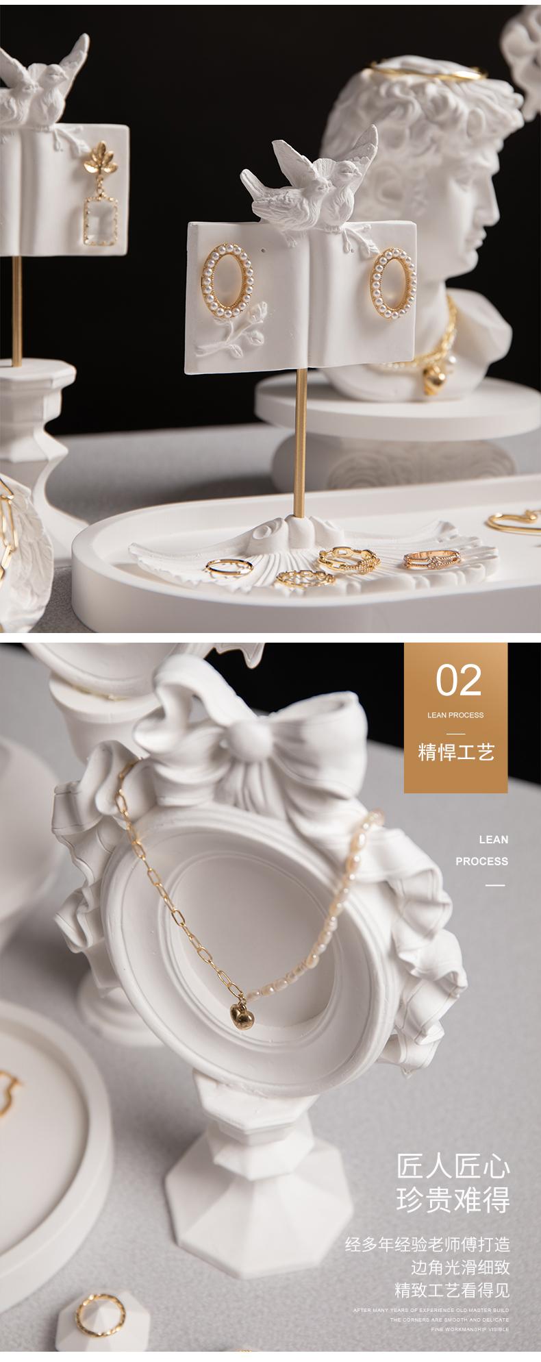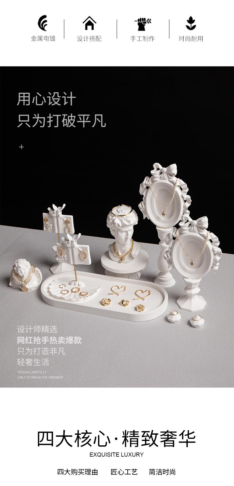 Expositor de joyas de yeso, marco de fotos en relieve, estante para collares y pendientes, bandeja para exhibir joyas, accesorios de fotografía y adornos.
