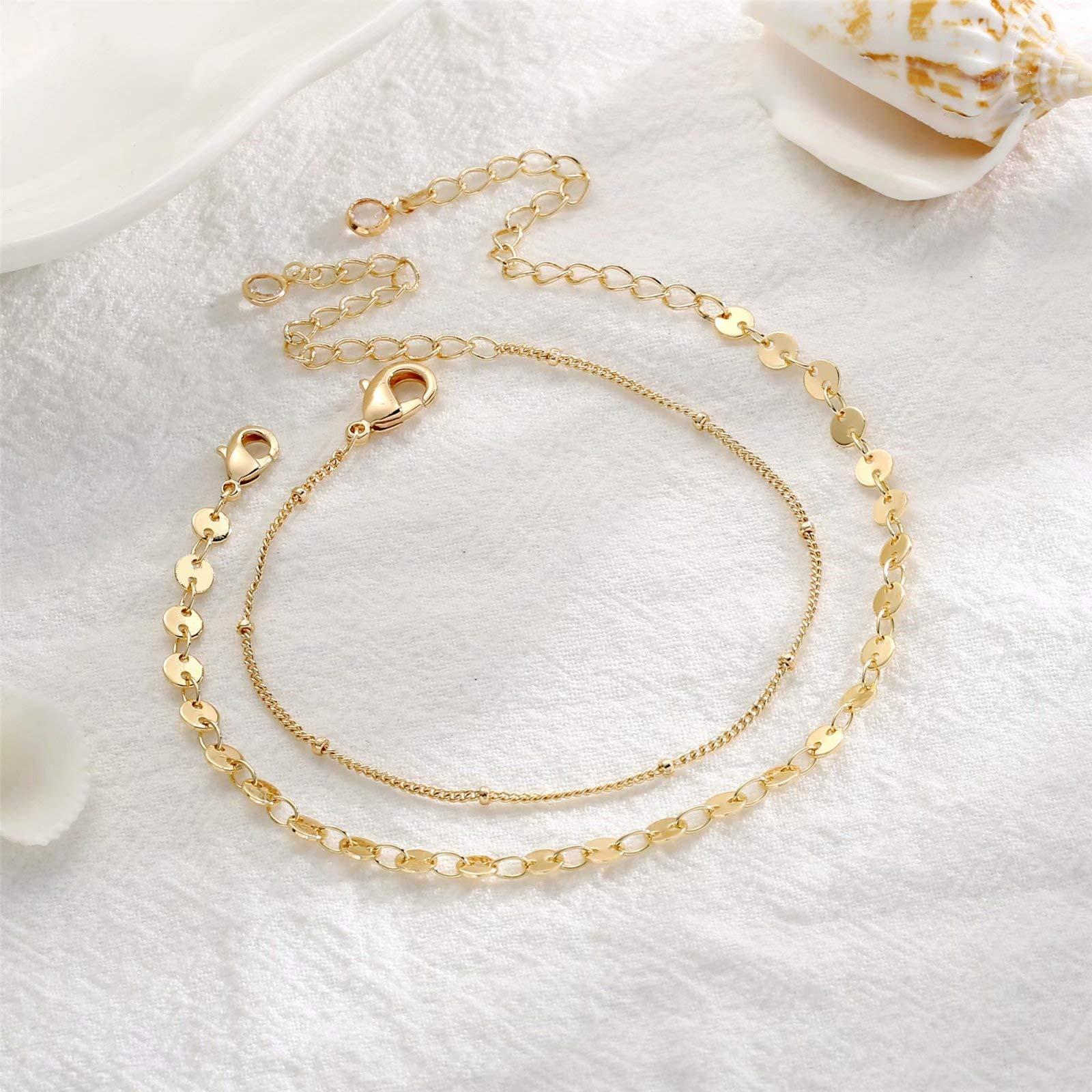 Pulsera de cadena de lentejuelas redondas apiladas con personalidad de moda transfronteriza europea y americana, pulsera de cadena de cuentas a juego simple de doble capa