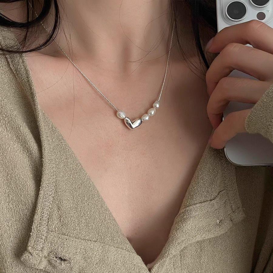 Collar de perlas de amor simple para mujer, estilo frío, elegante, combinable con todo, cadena de clavícula creativa, cadena de cuello con nicho.
