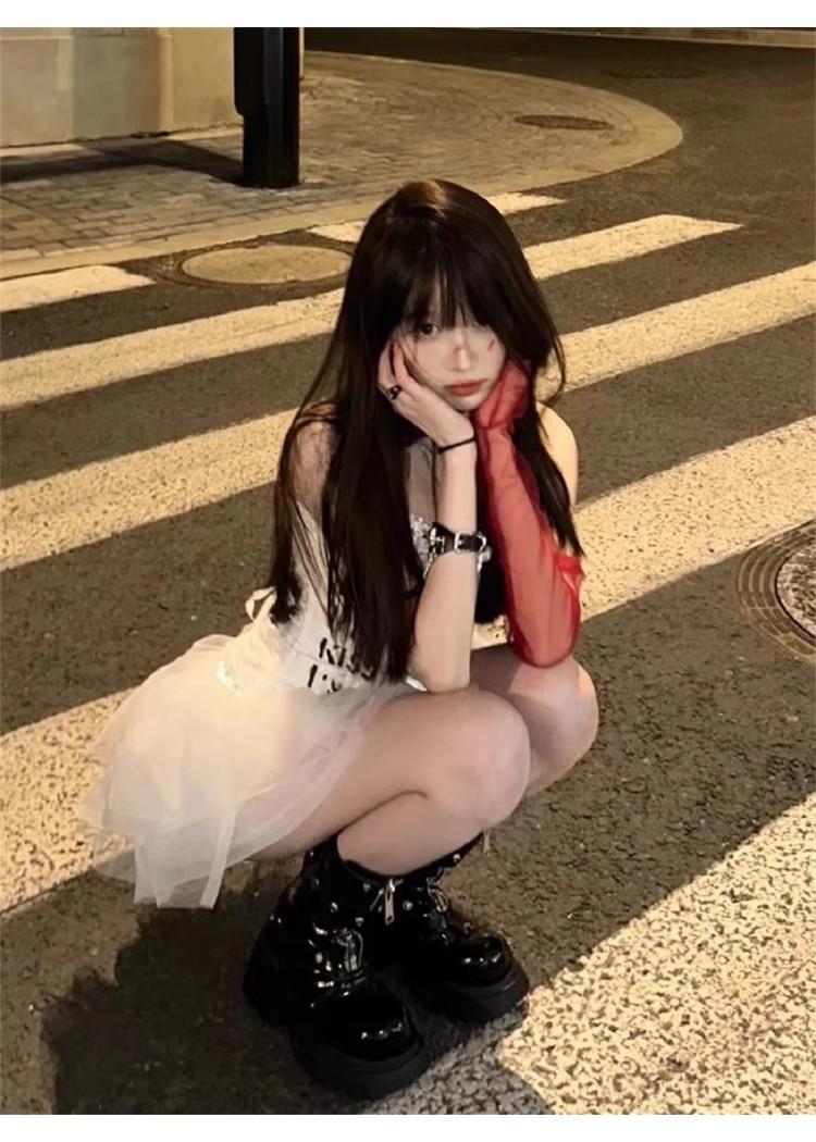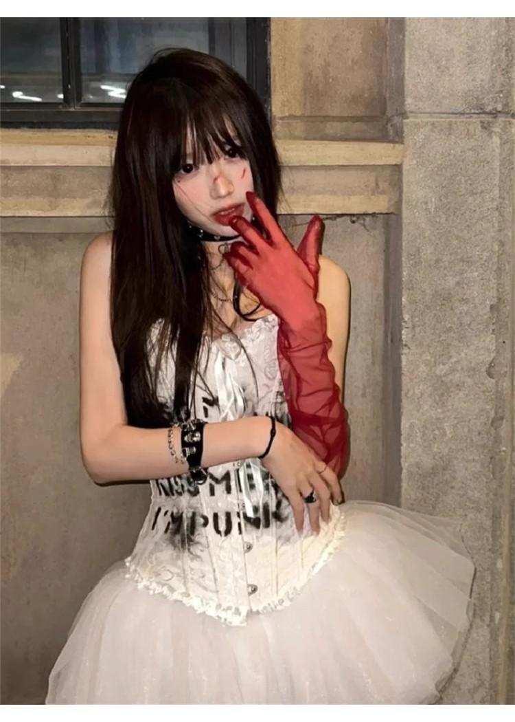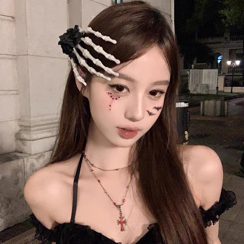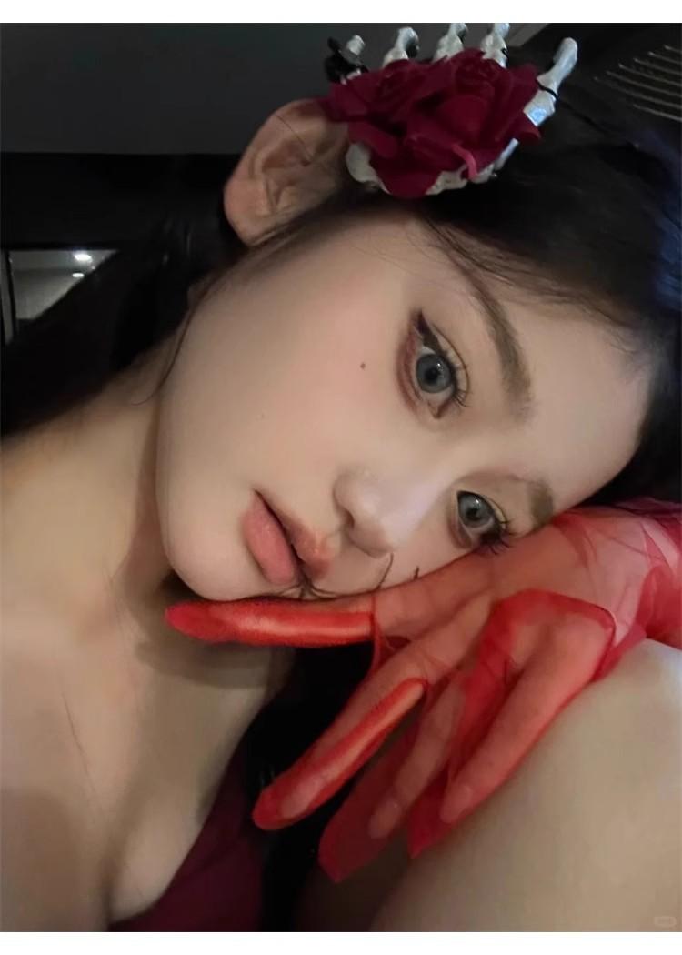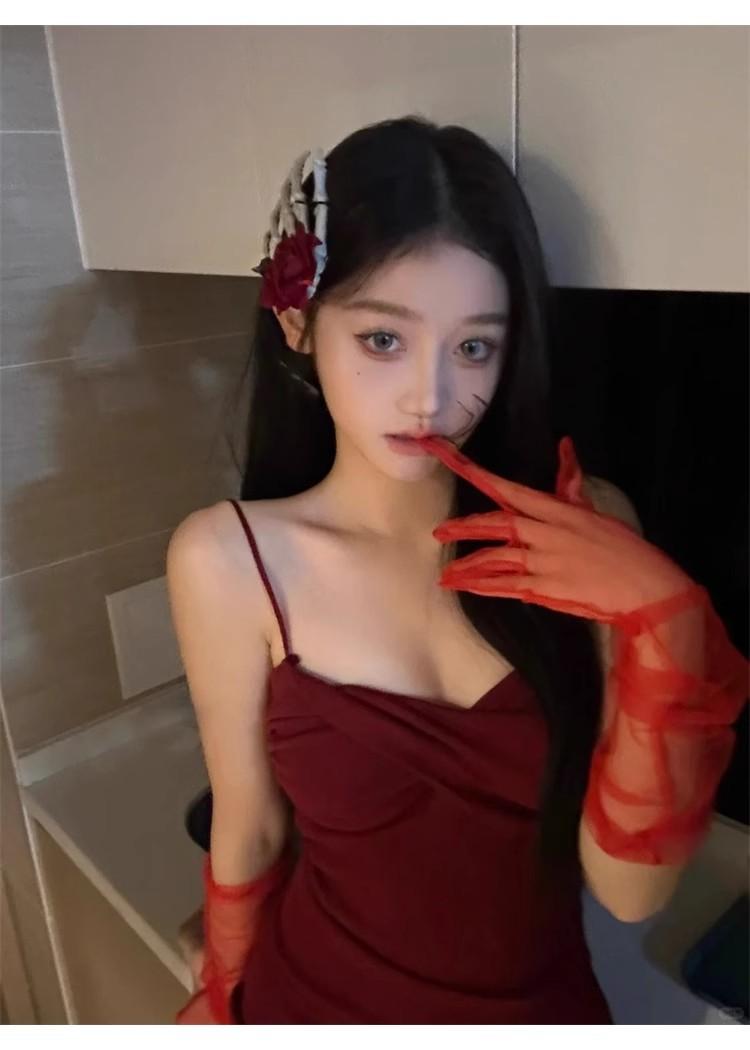 Guantes de Malla Transparentes Rojo Vino Puro Retro Halloween cos Accesorios para Fotos de Chicas Hot Horquilla Rosa Calavera