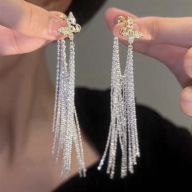 Pendientes de plata con forma de mariposa, galaxia, cascada, borlas, elegantes y a la moda, de alta gama, con un toque de lujo y luz.