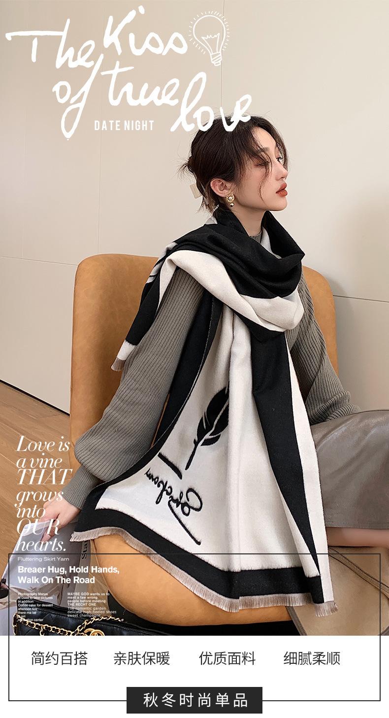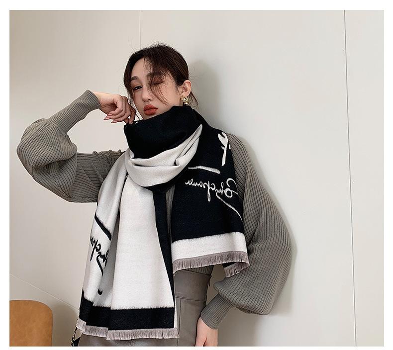 Nueva bufanda de invierno de doble cara de imitación de cachemira, bufanda sencilla de estilo coreano con letras gruesas para parejas, chal que combina con todo, habitación con aire acondicionado