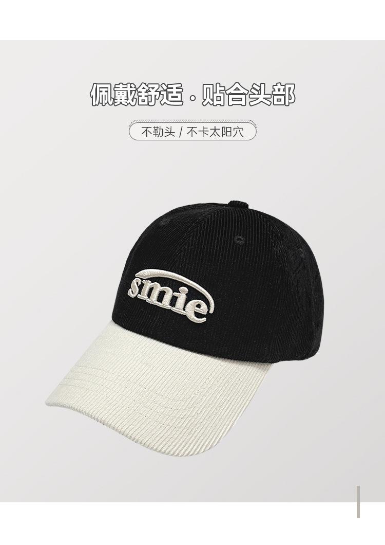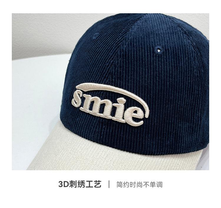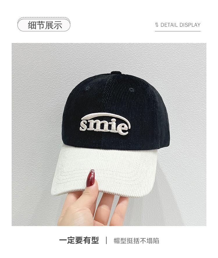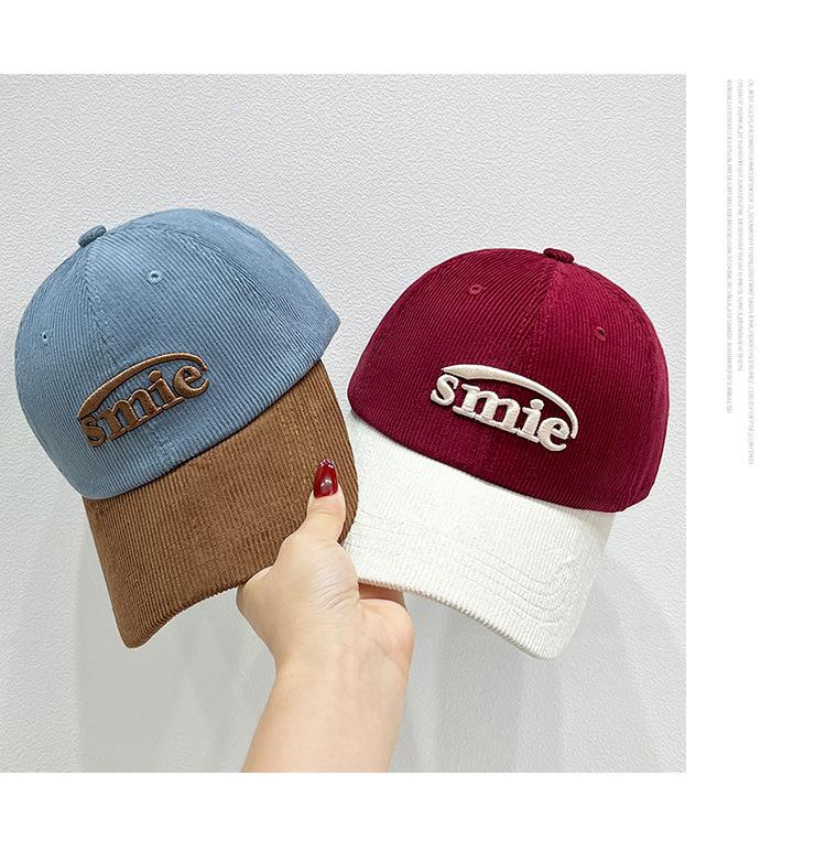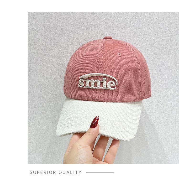 Gorra de béisbol de pana con letras bordadas estilo coreano para mujer, estilo pequeño, para otoño e invierno, combina con todo, informal, para hombre.