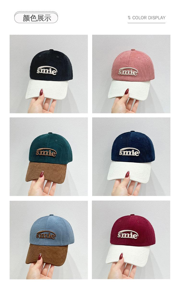 Compra Gorra de béisbol de pana con letras bordadas estilo coreano para mujer, estilo pequeño, para otoño e invierno, combina con todo, informal, para hombre. al por mayor en Joom.pro