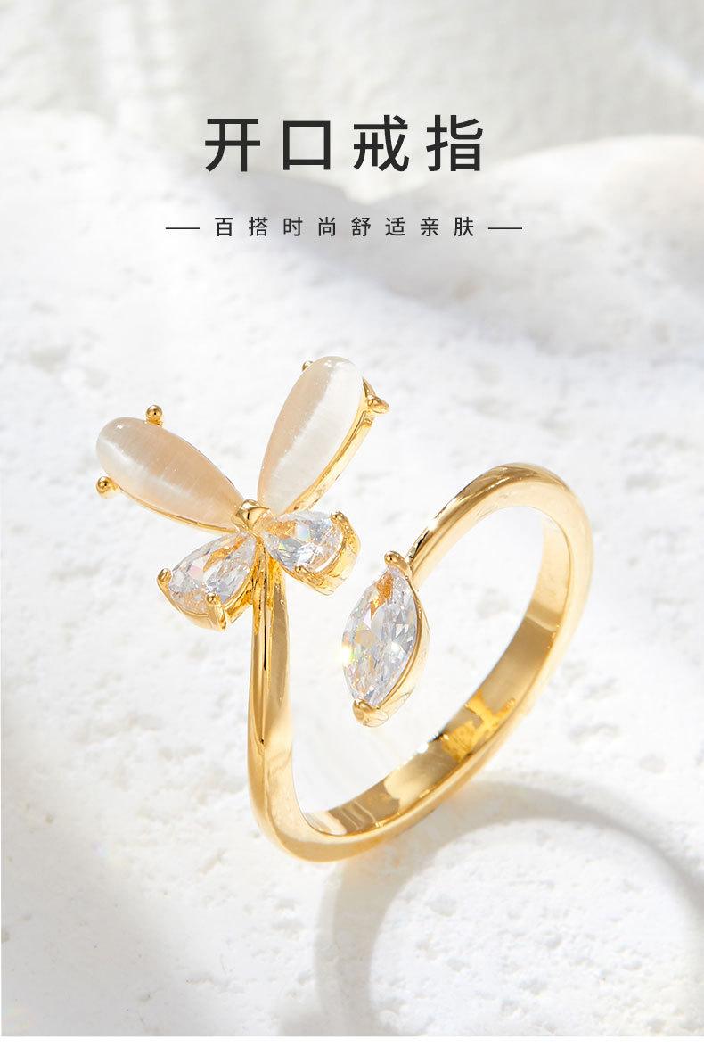 Anillo de Apertura de Mariposa Simple de Moda Anillo de Dedo de Insecto Original de Alto Sentido con Piedra Ojo de Gato Nuevo Anillo Ajustable