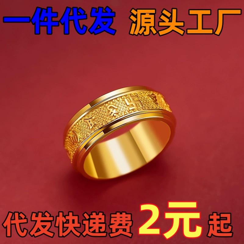 Herencia de Método Antiguo Oro Arena Mantra de Seis Caracteres Anillo Giratorio Dominante Anillo de Pareja Masculino y Femenino Precio al por Mayor Transmisión en Vivo de Douyin