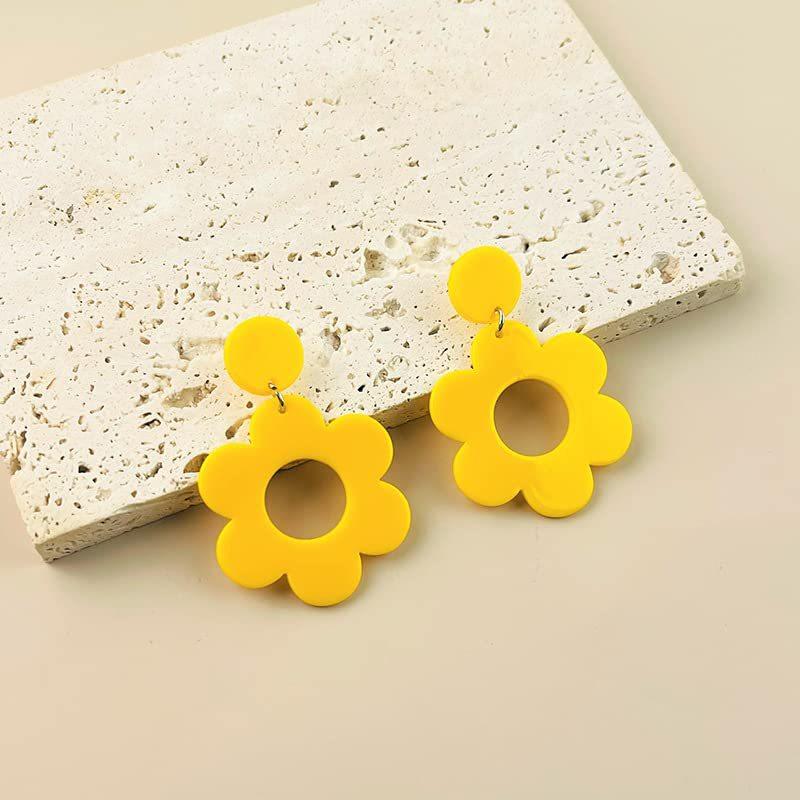 Pendientes de moda transfronteriza, sencillos, dulces, frescos, acrílicos, geométricos, huecos, pendientes, pendientes, joyería para las orejas, girasol para mujer.