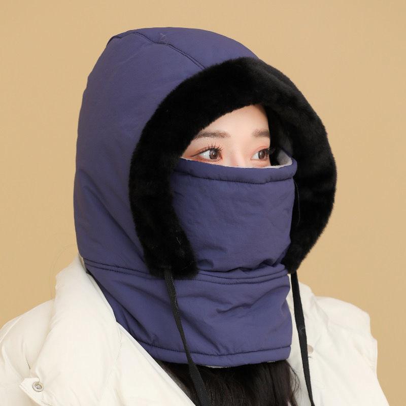 Gorro de invierno cálido Lei Feng para hombres y mujeres, con protectores auditivos, forro polar, máscara gruesa a prueba de frío, gorro integrado para montar a caballo a prueba de viento.