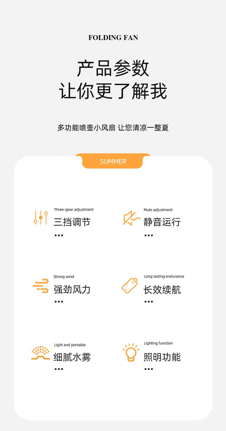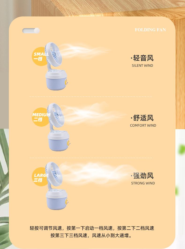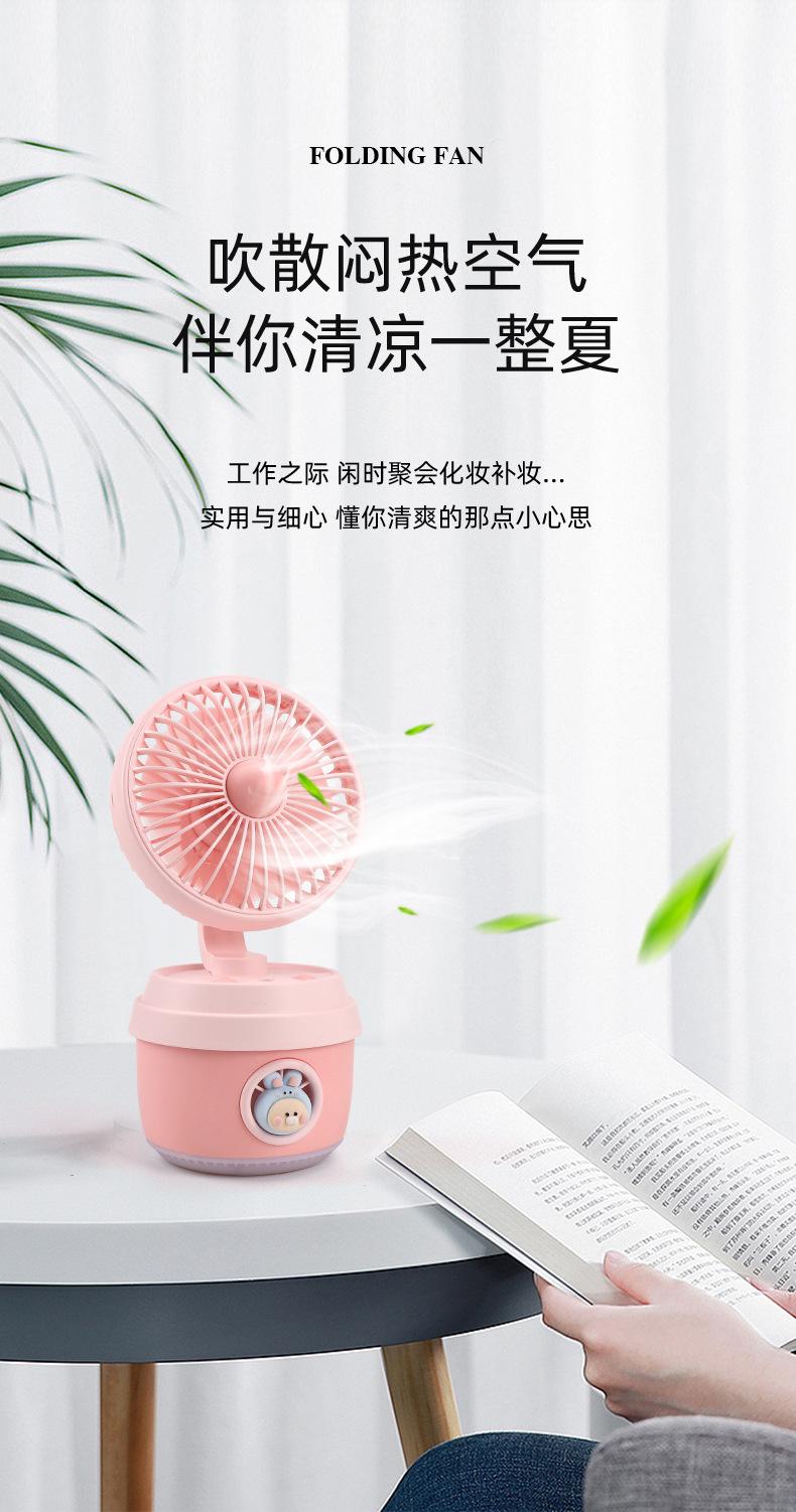 Ventilador pequeño con pulverizador ligero, carga USB, tres ángulos de viento ajustables, ventilador de escritorio para dormitorio de estudiantes de verano