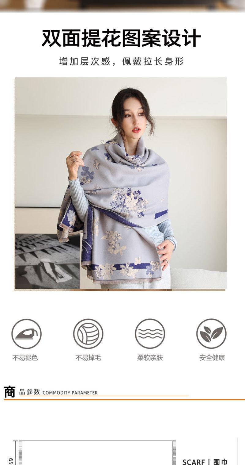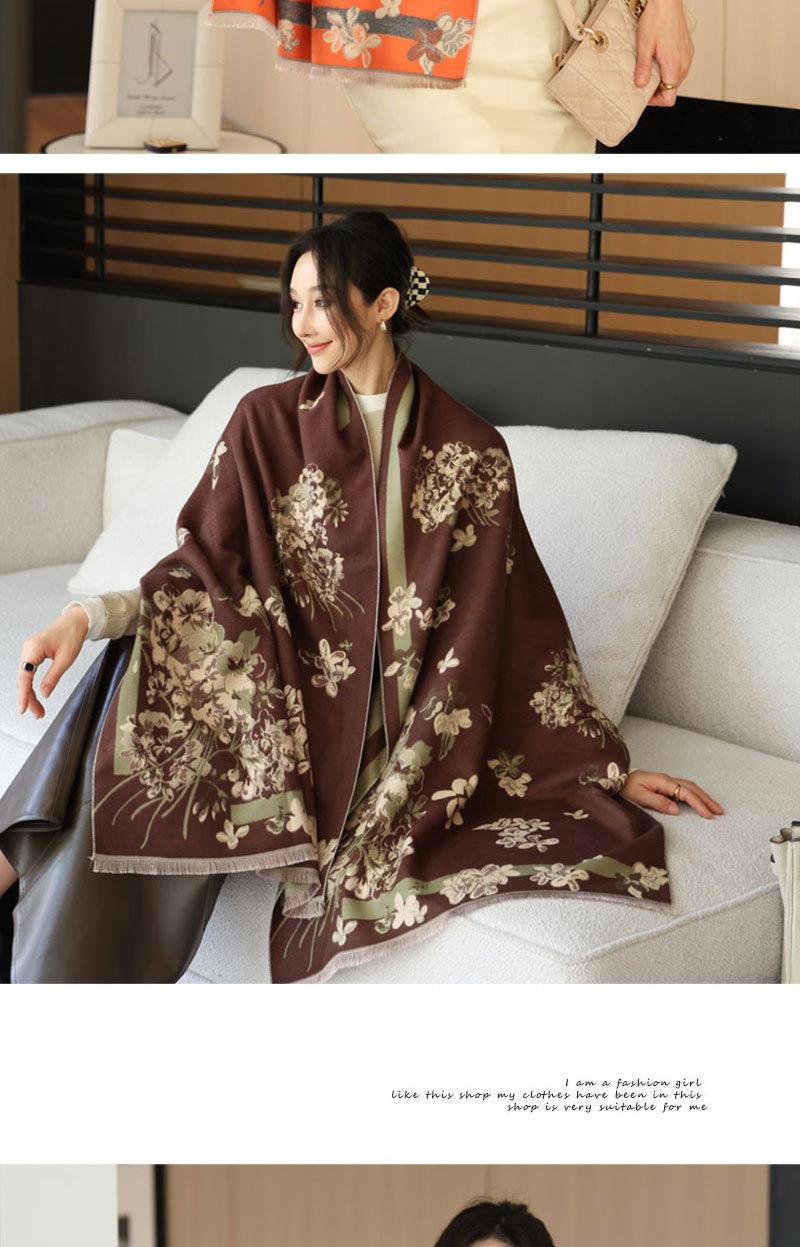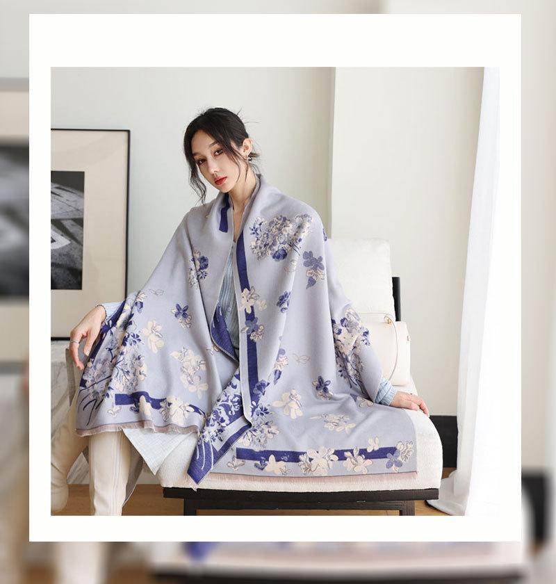 Bufanda Elegante de Cachemira Guofeng para Mujer Otoño e Invierno Nueva Chal Jacquard Geranio Combinable Bufanda Cálida Gruesa