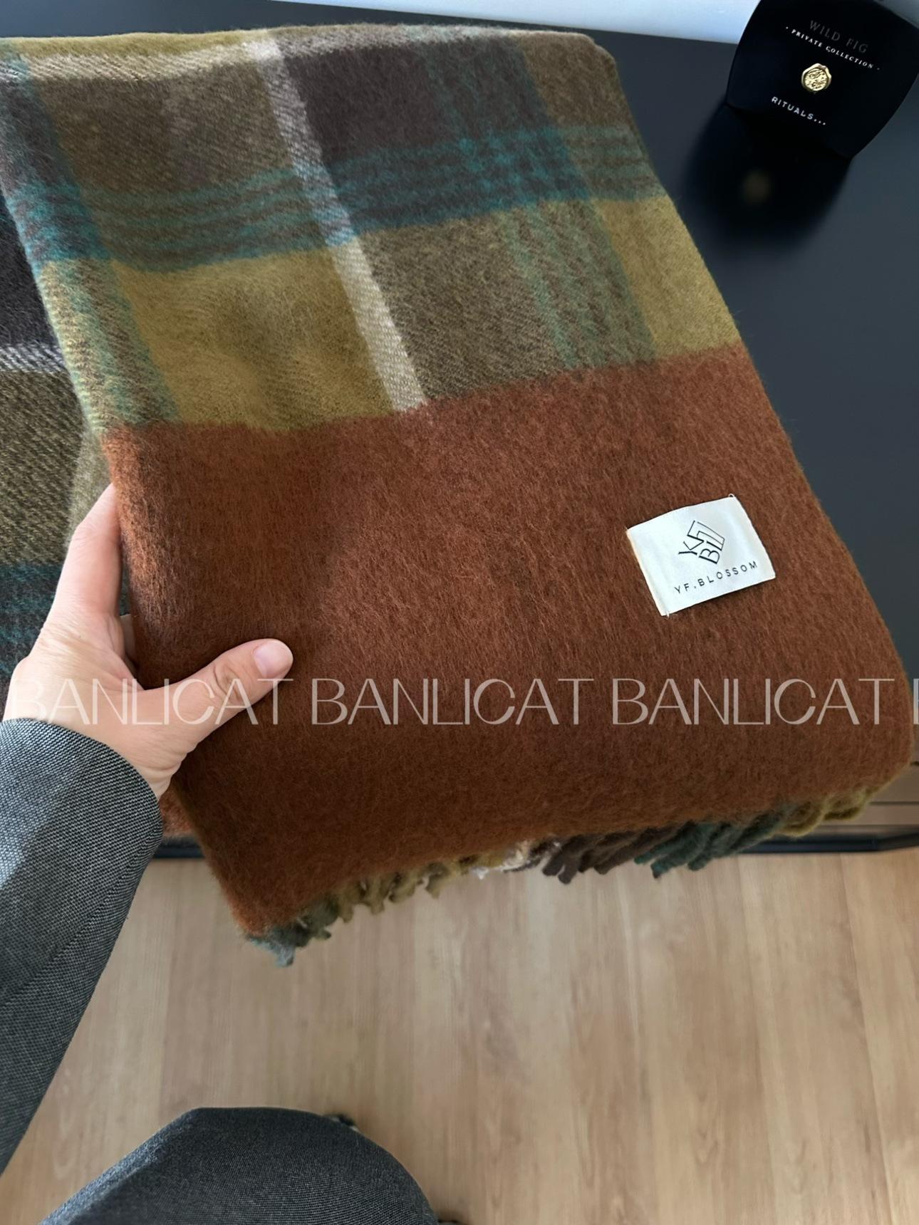 Blue plaid black wide edge, Coffee plaid caramel edge, Camel plaid with big red edges, Pink gray plaid, Green plaid