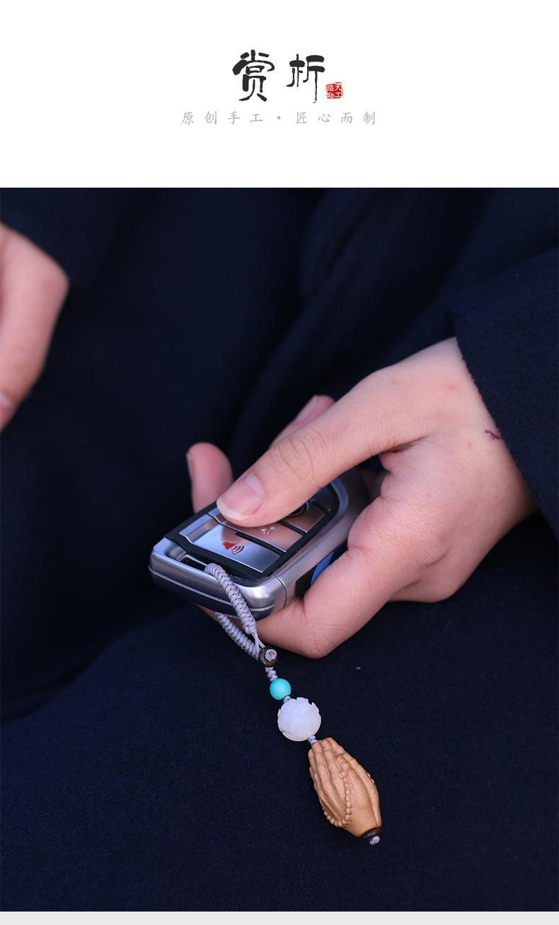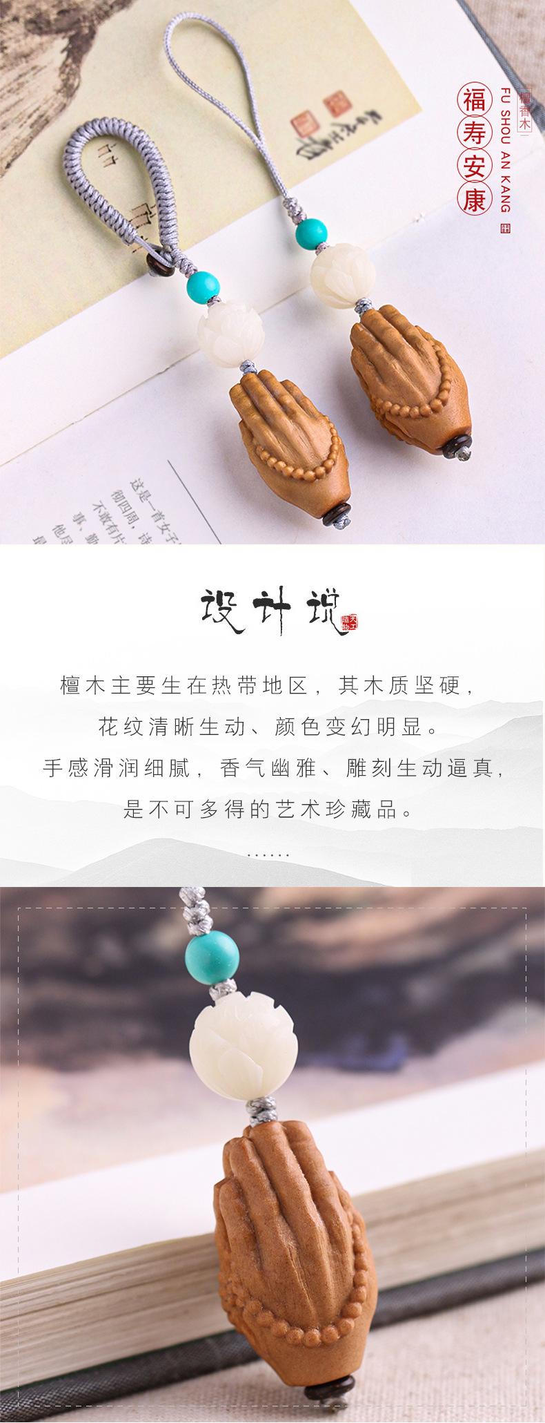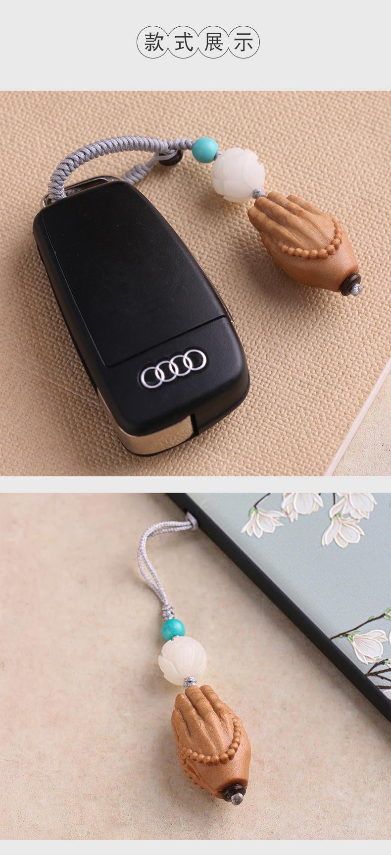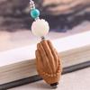 Llavero colgante de coche con mano de Buda tallada en sándalo, artesanía de madera, decoración, fábrica al por mayor