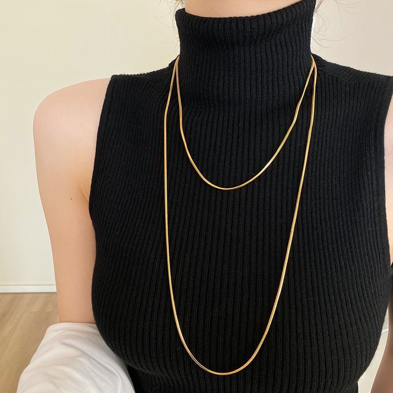 [Acero de titanio de cuerpo completo] Collar de acero de titanio simple con personalidad doble europea y americana, cadena de suéter de moda de lujo ligera