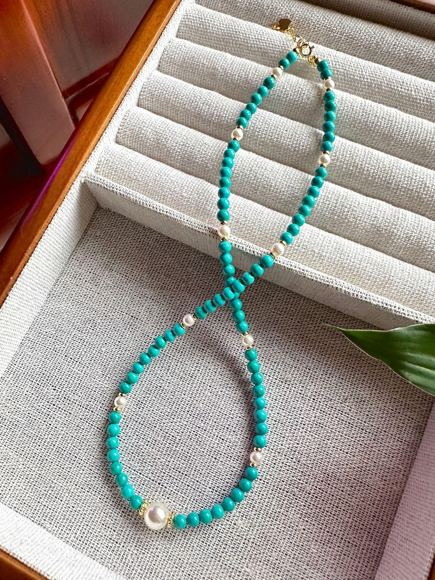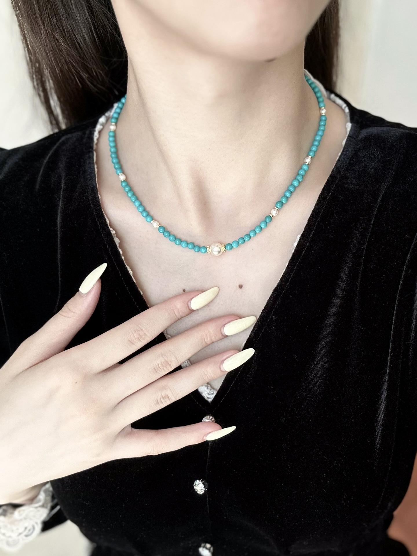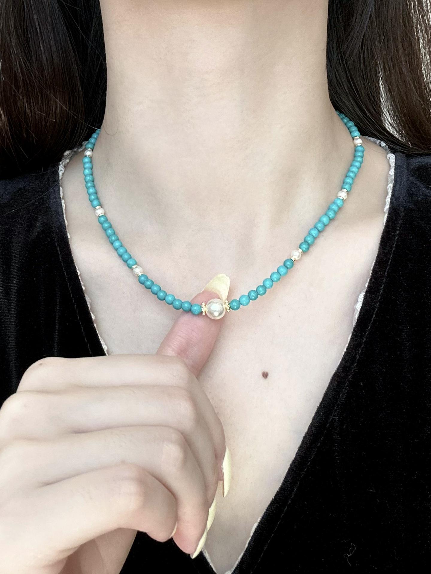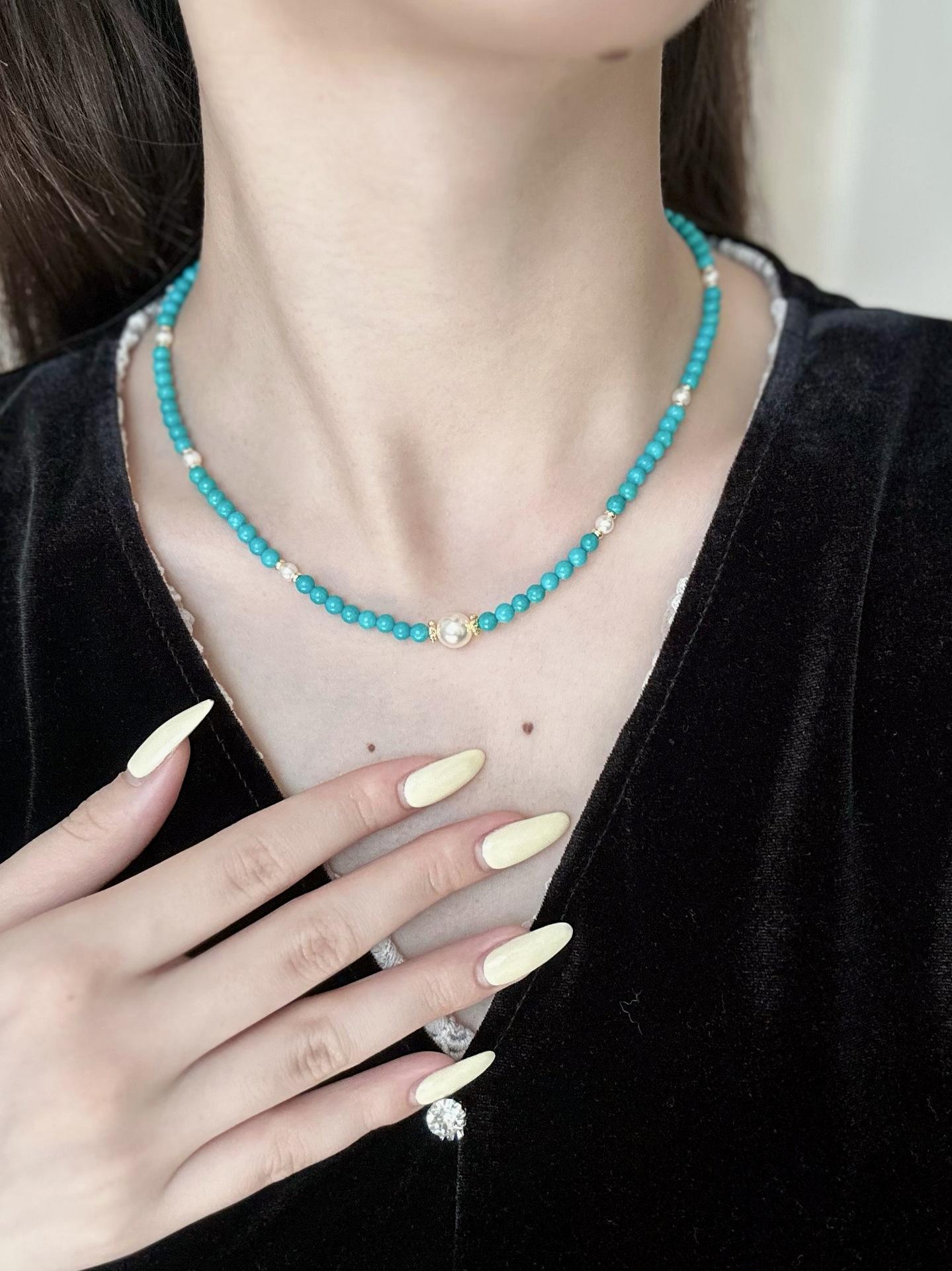 Nuevo collar de perlas Shijia de estilo chino con costuras de turquesa azul en plata esterlina S925, cadena de clavícula de nicho de alta calidad a la moda para mujer.