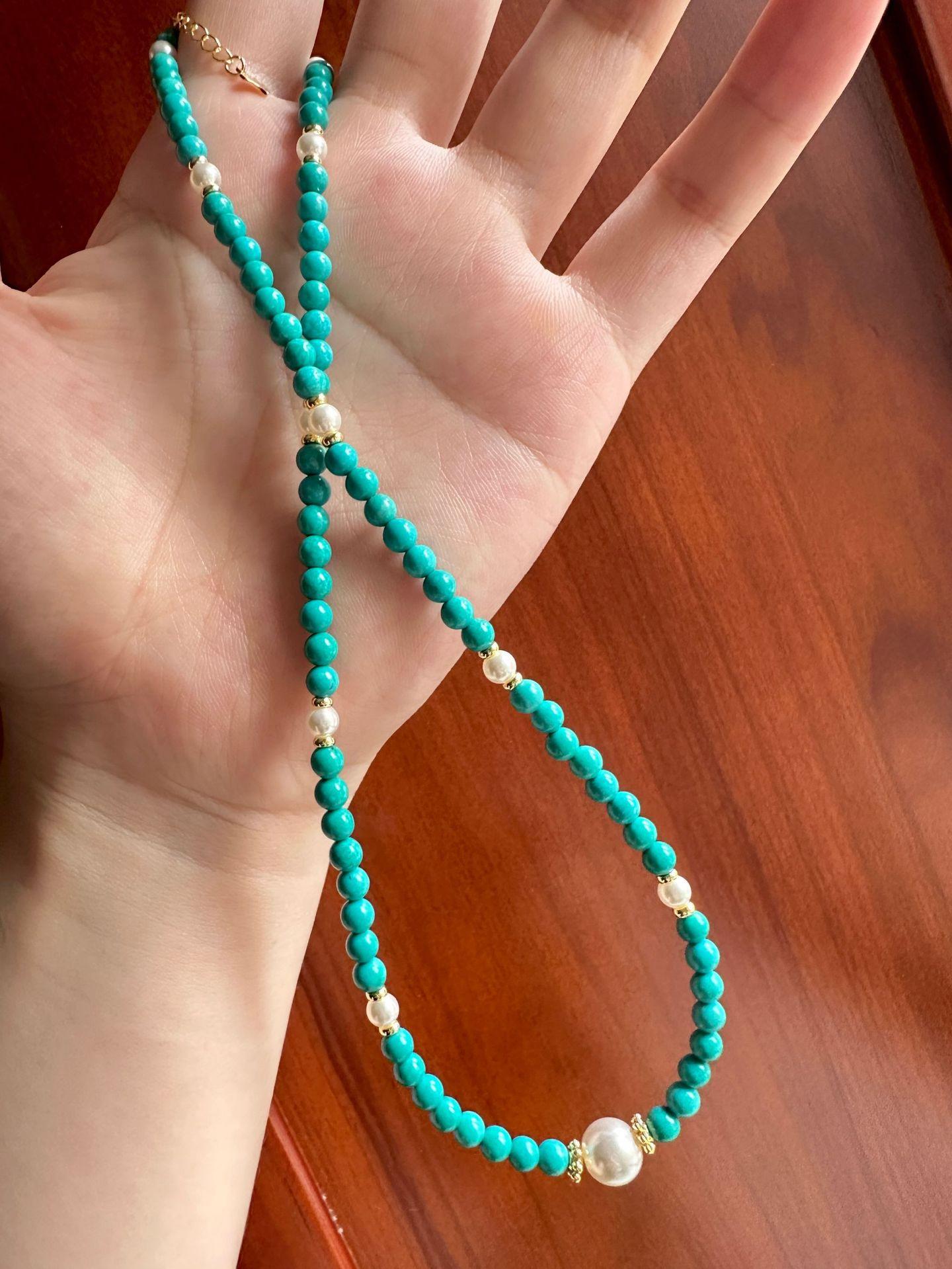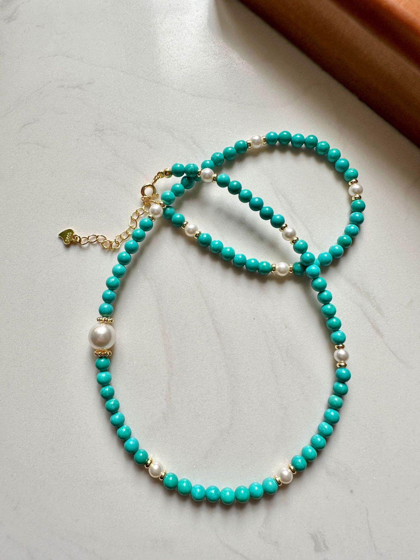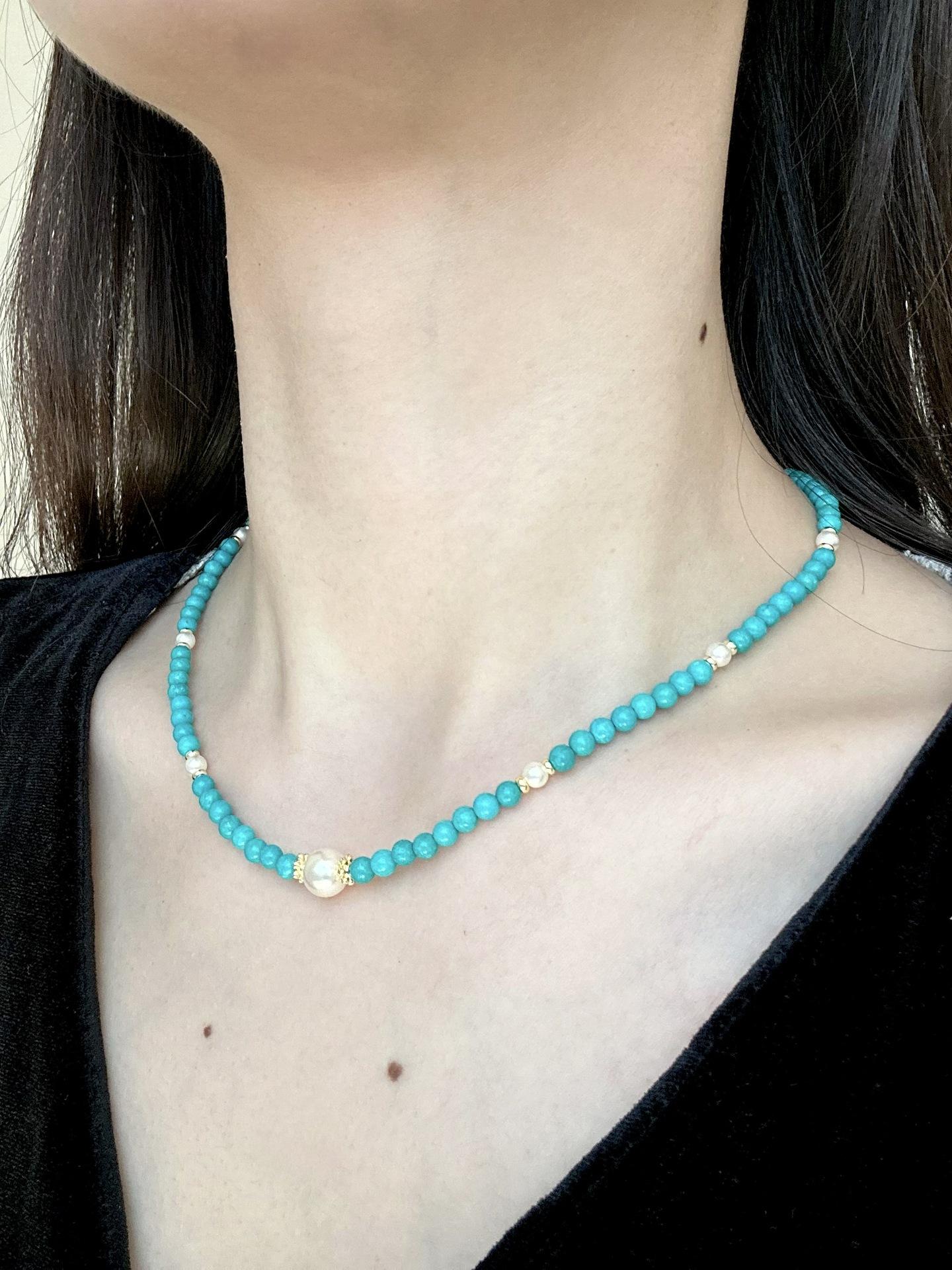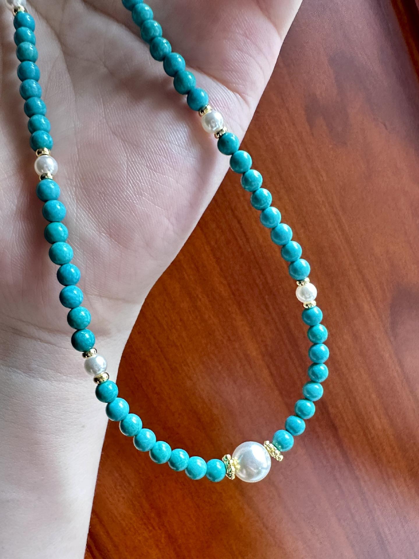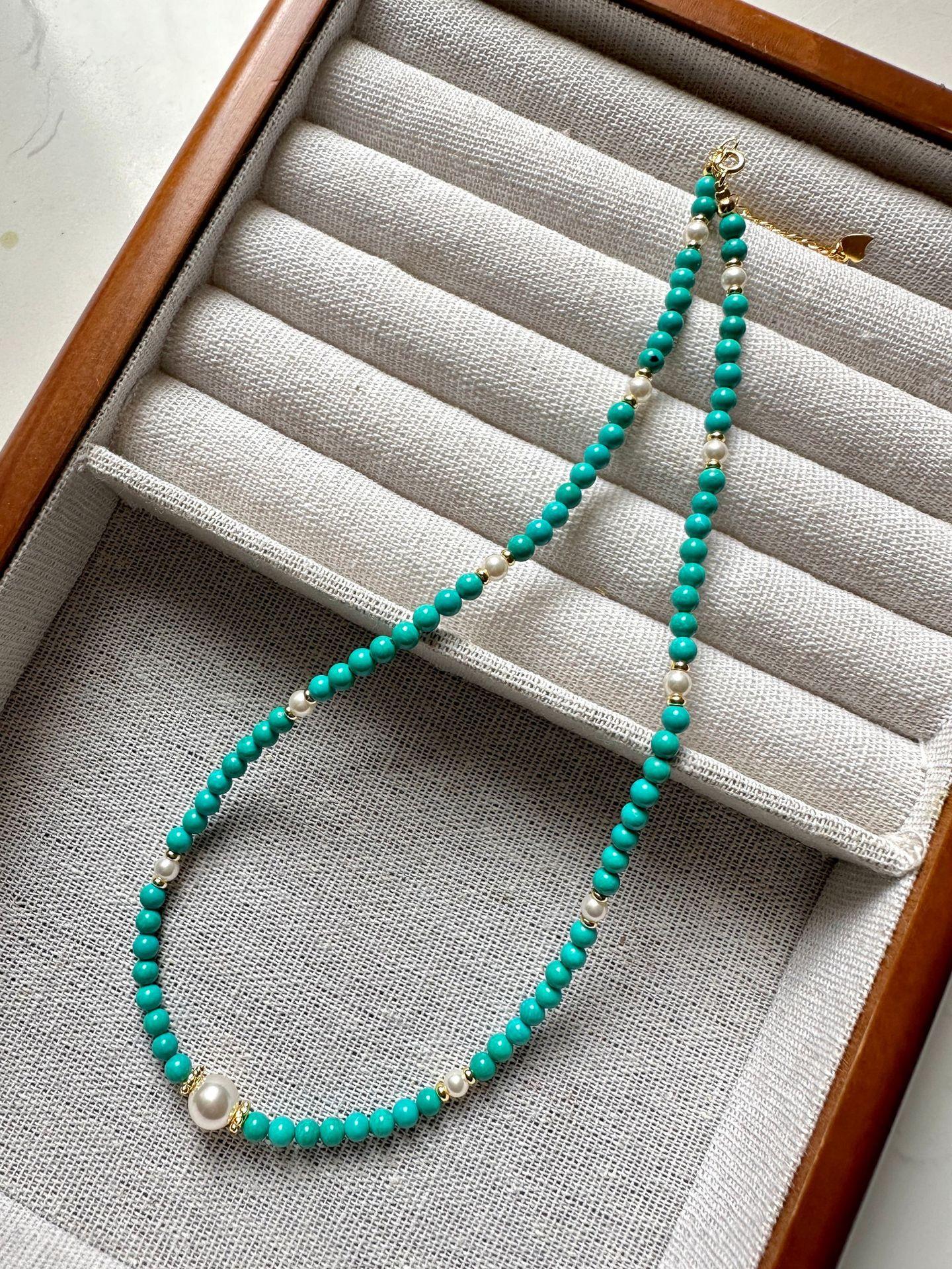 Nuevo collar de perlas Shijia de estilo chino con costuras de turquesa azul en plata esterlina S925, cadena de clavícula de nicho de alta calidad a la moda para mujer.