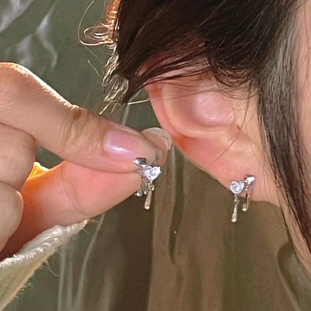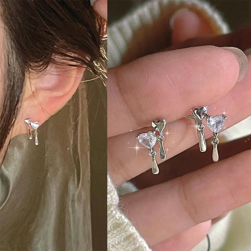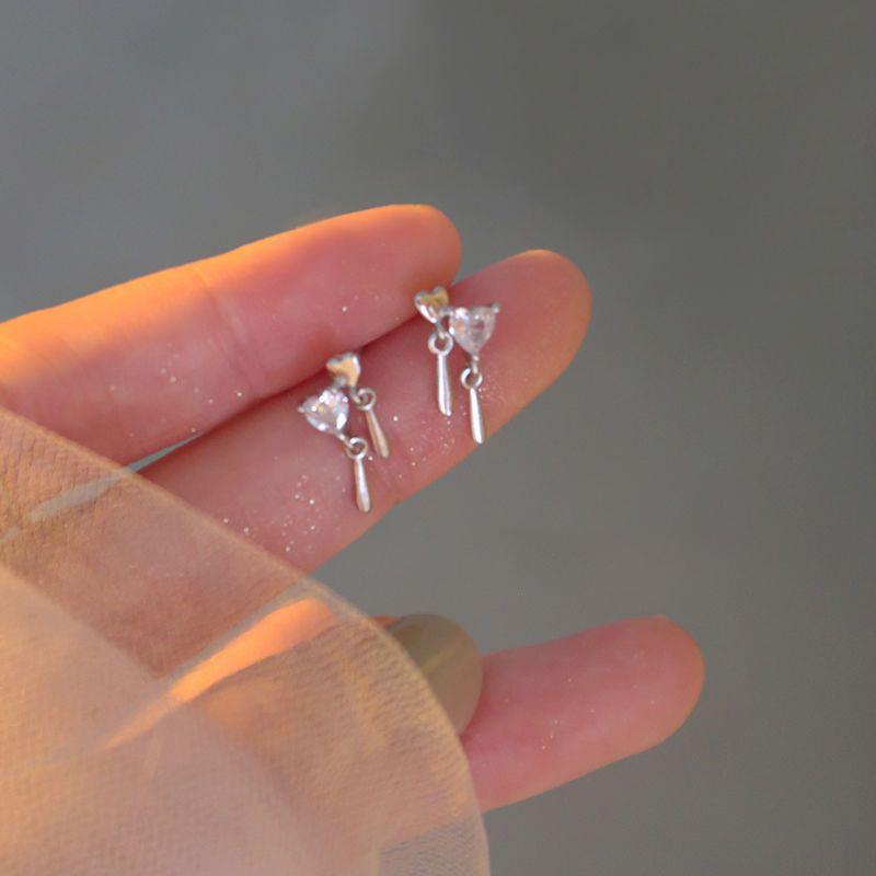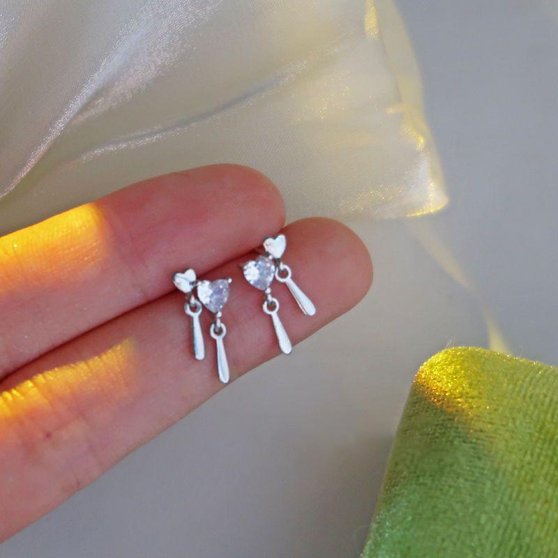 Pendientes mini de doble amor con aguja de plata 925, sencillos, combinables, elegantes, de diseño nicho, de alta gama, nuevos.
