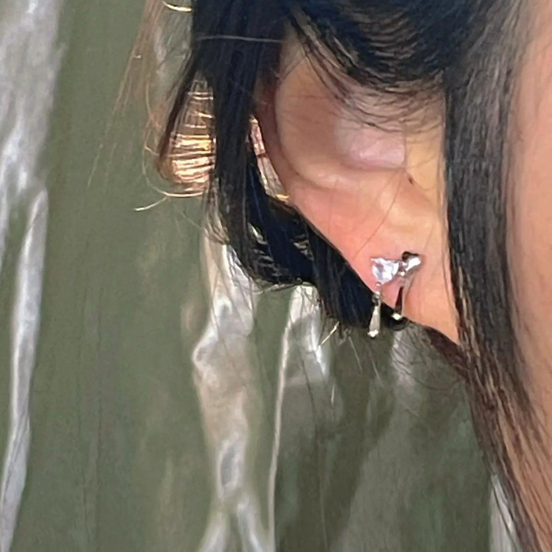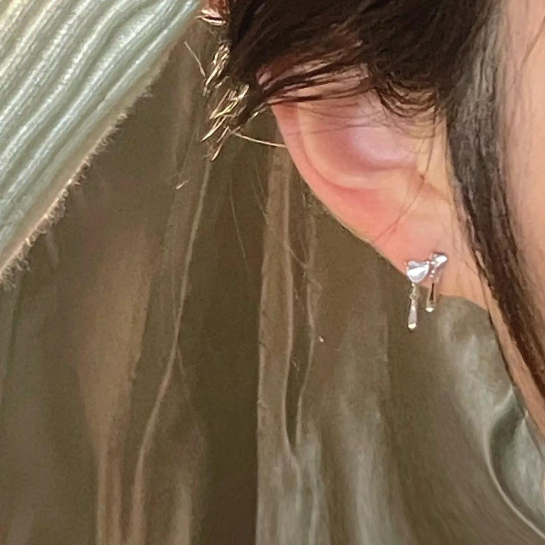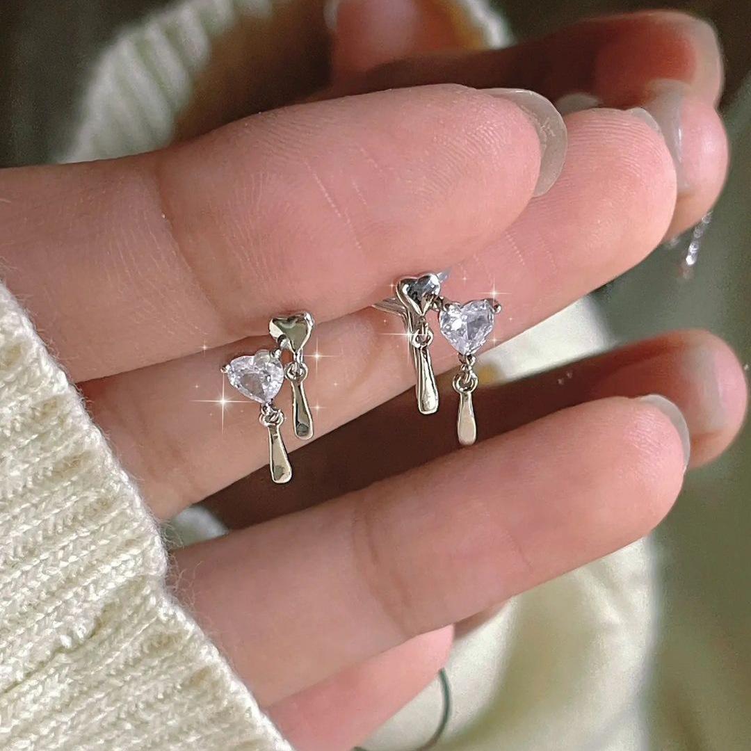 Pendientes mini de doble amor con aguja de plata 925, sencillos, combinables, elegantes, de diseño nicho, de alta gama, nuevos.