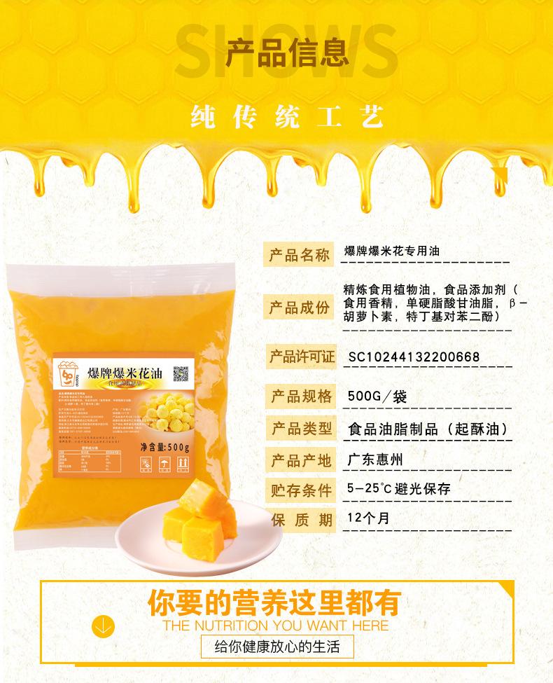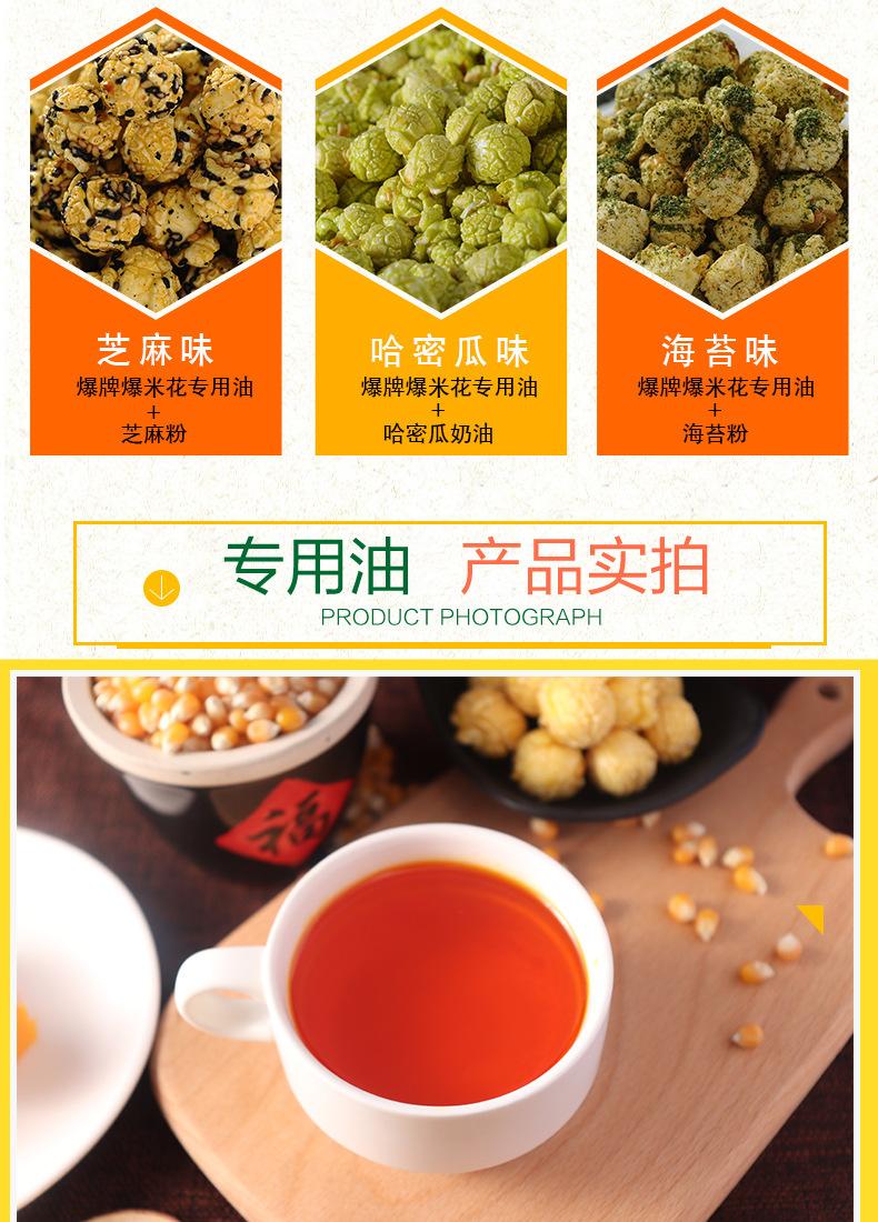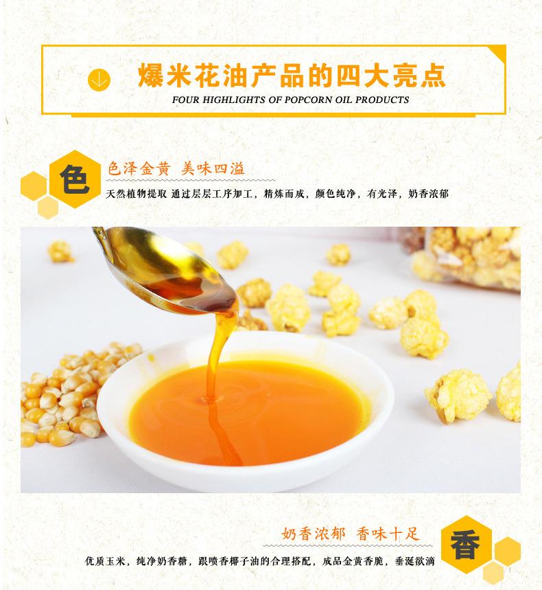 Cadena de suministro de aceite especial para palomitas de maíz, popular en línea, en bolsa de 500 g, sellado, con sabor a leche para uso doméstico, al por mayor.