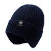 Gorro de invierno para hombre, cálido, con protección para los oídos, de algodón, para ciclismo al aire libre, forro polar, grueso, resistente al frío, de punto de lana.