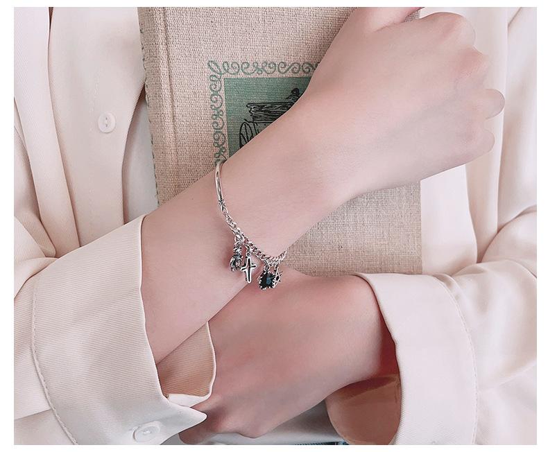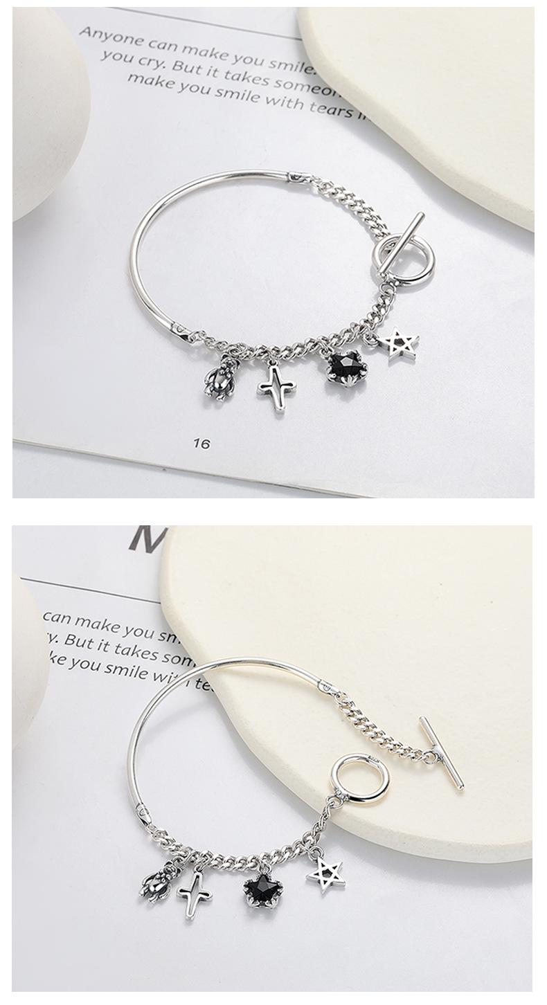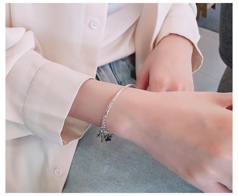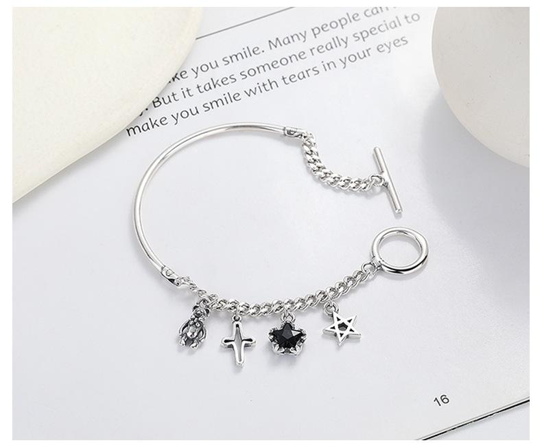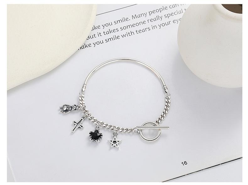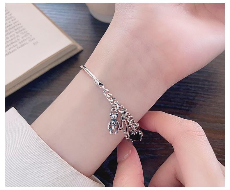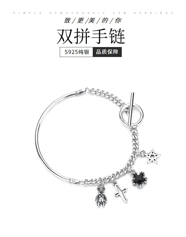 Yunchao Xuan S925 Plata Moda Estilo Coreano Oso Estrella Cadena Doble Hebilla Ot Diseño Moderno Diseño Nicho Joker