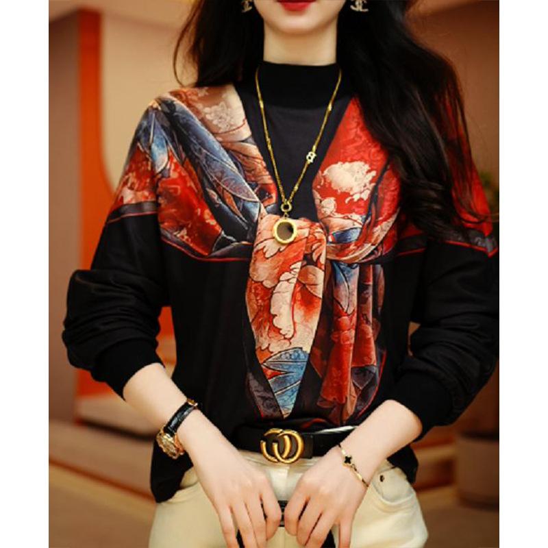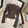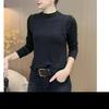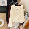 Camiseta básica de manga larga con cuello redondo para mujer, estilo occidental, adelgazante, combinable, estilo europeo