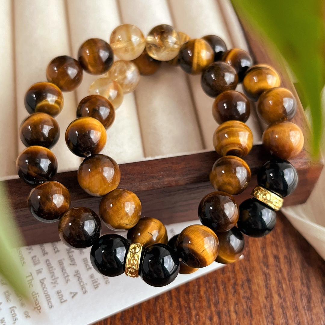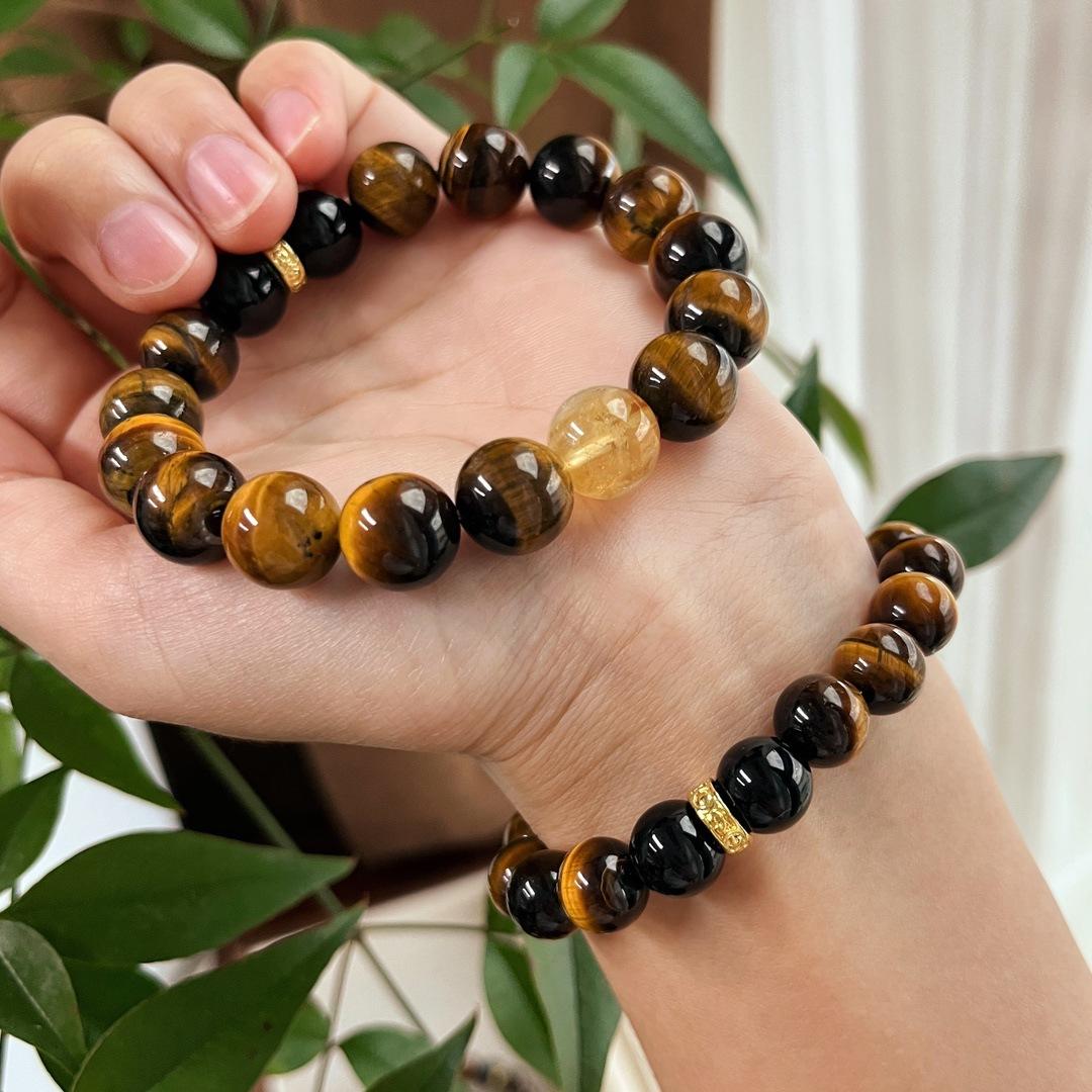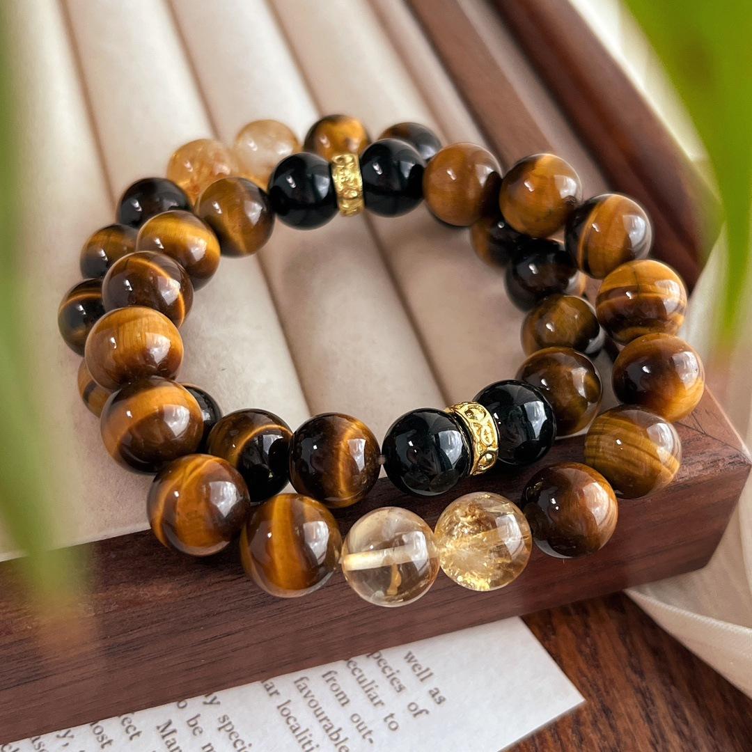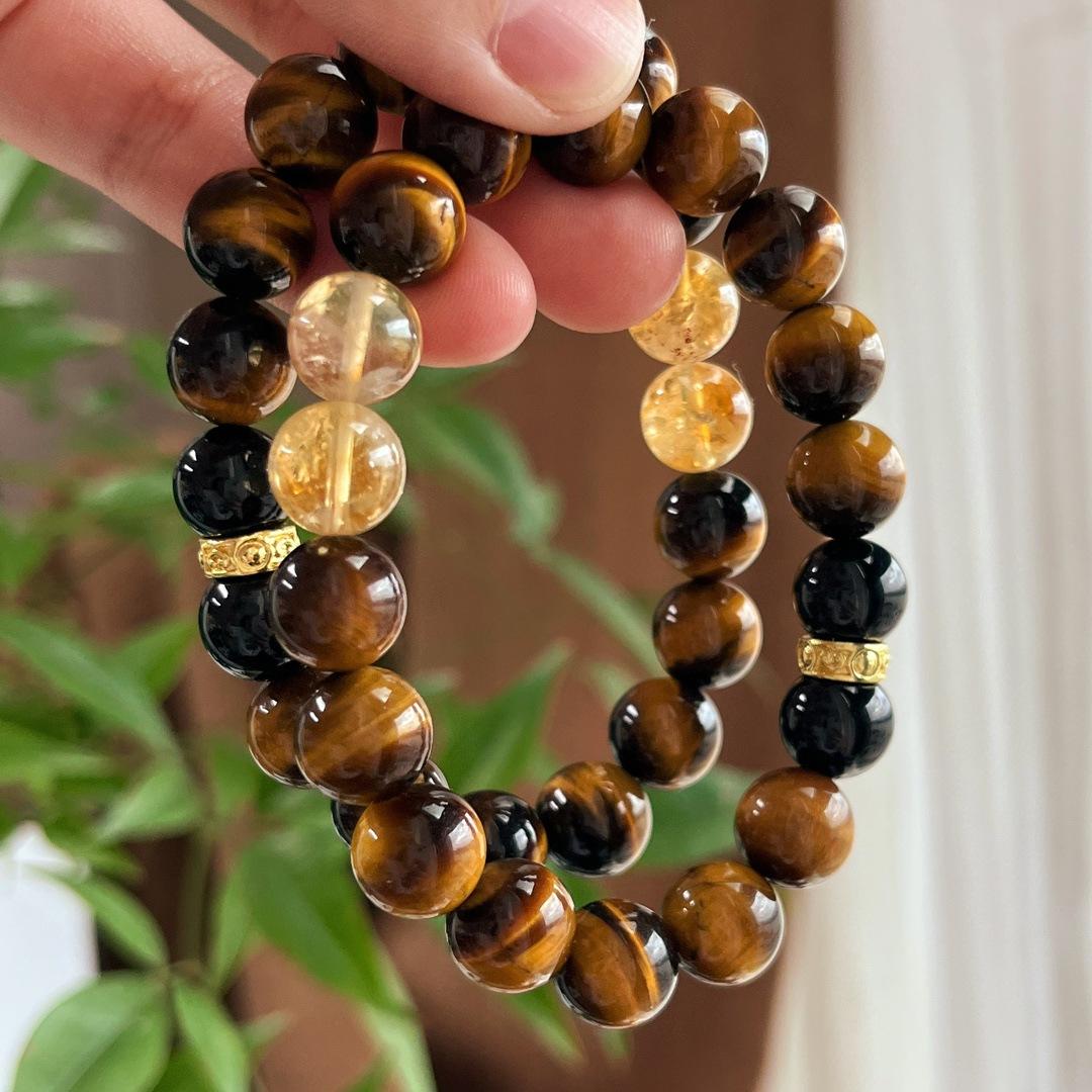 Pulsera de Estilo Nacional Vintage para Pareja Estilo Maillard de alta calidad Ojo de Tigre Natural Citrino Ónix Negro