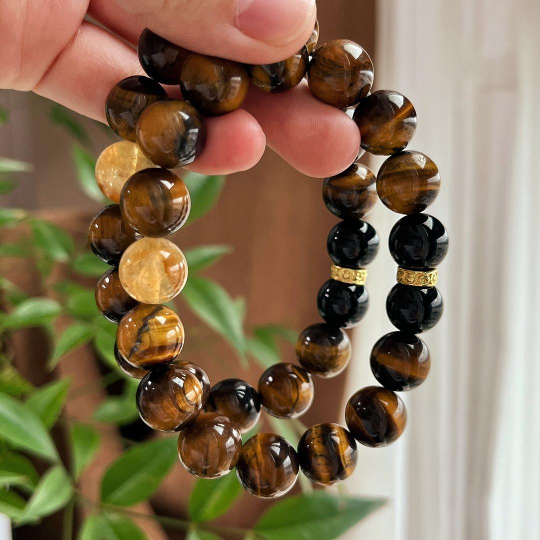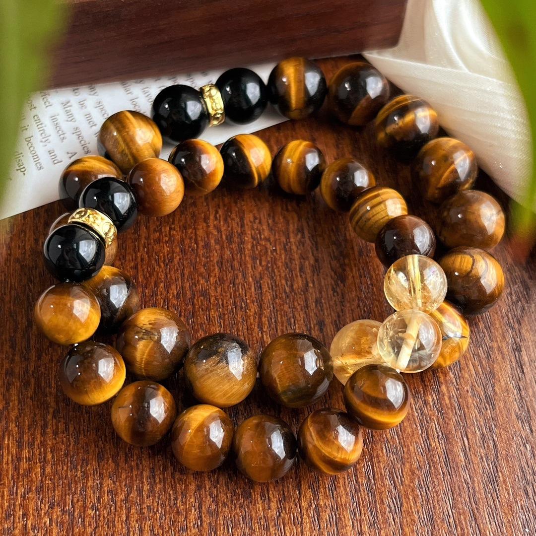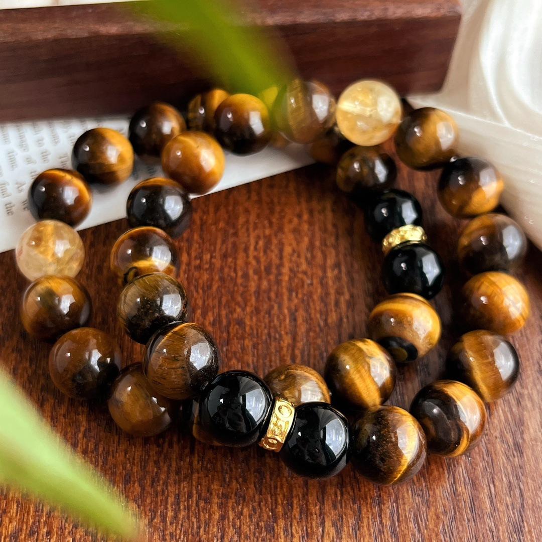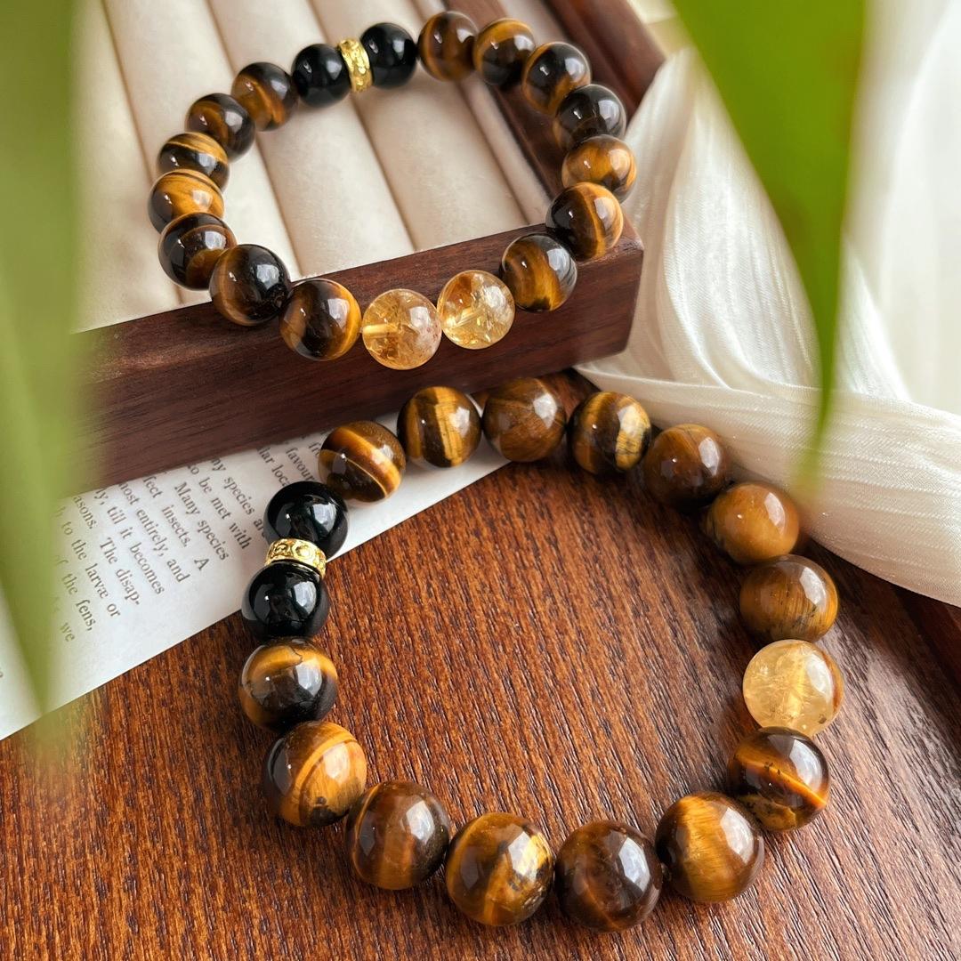 Pulsera de Estilo Nacional Vintage para Pareja Estilo Maillard de alta calidad Ojo de Tigre Natural Citrino Ónix Negro