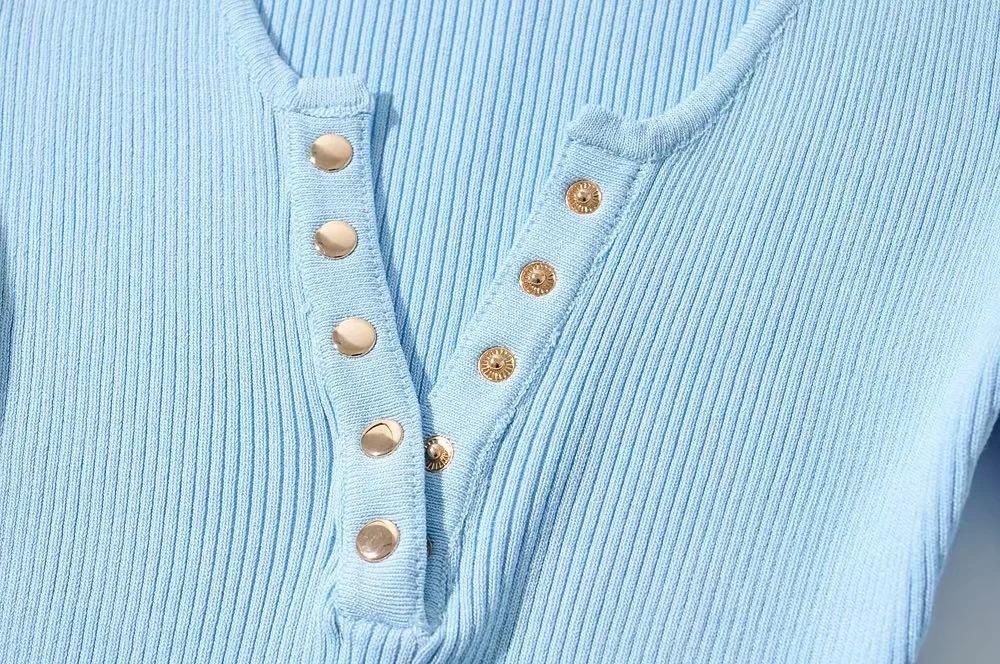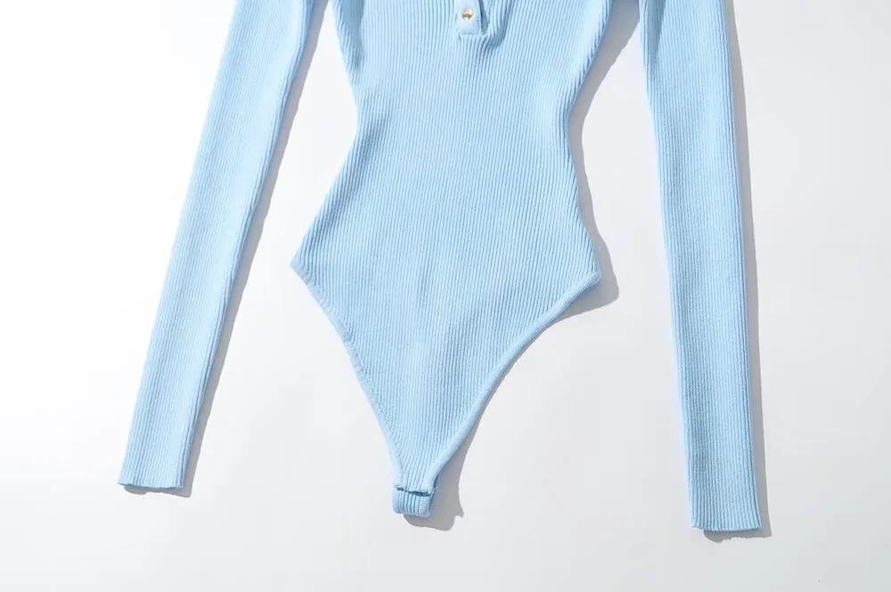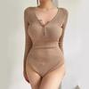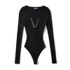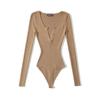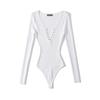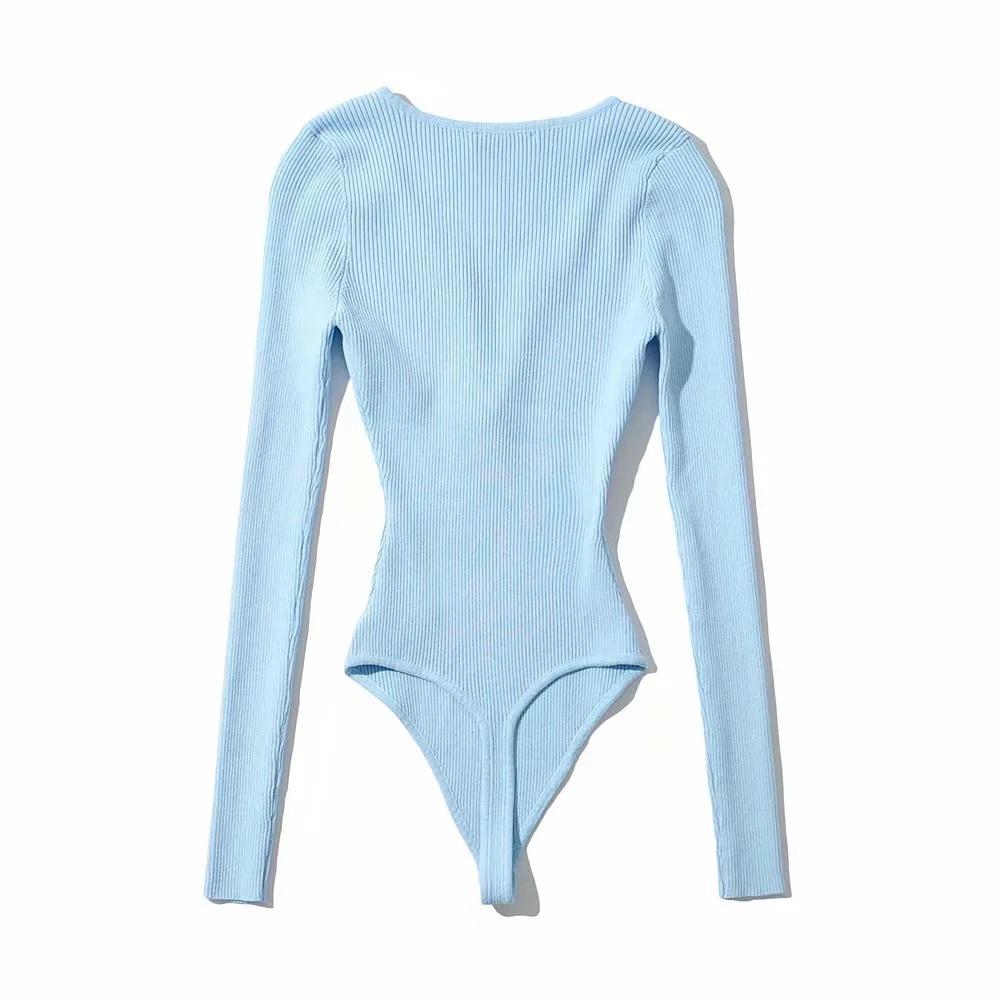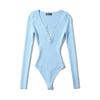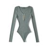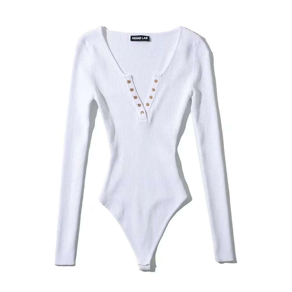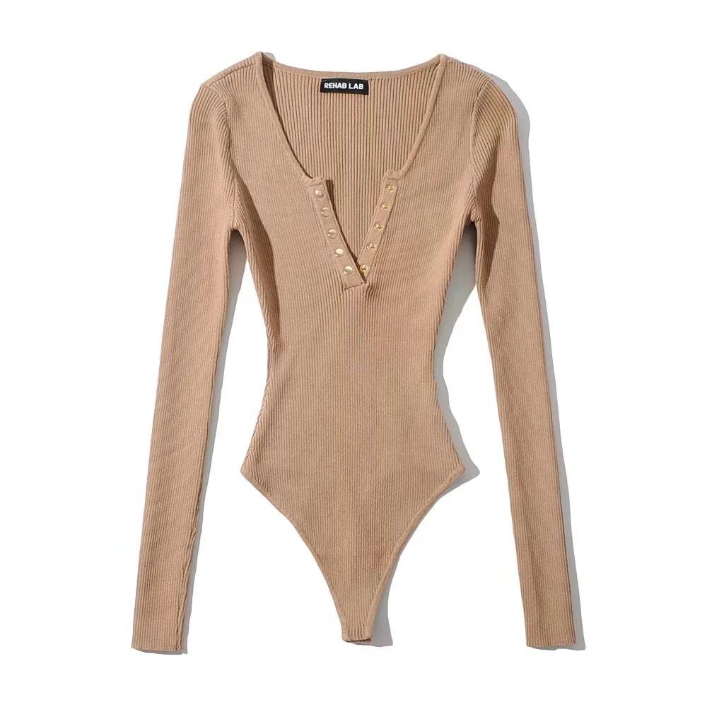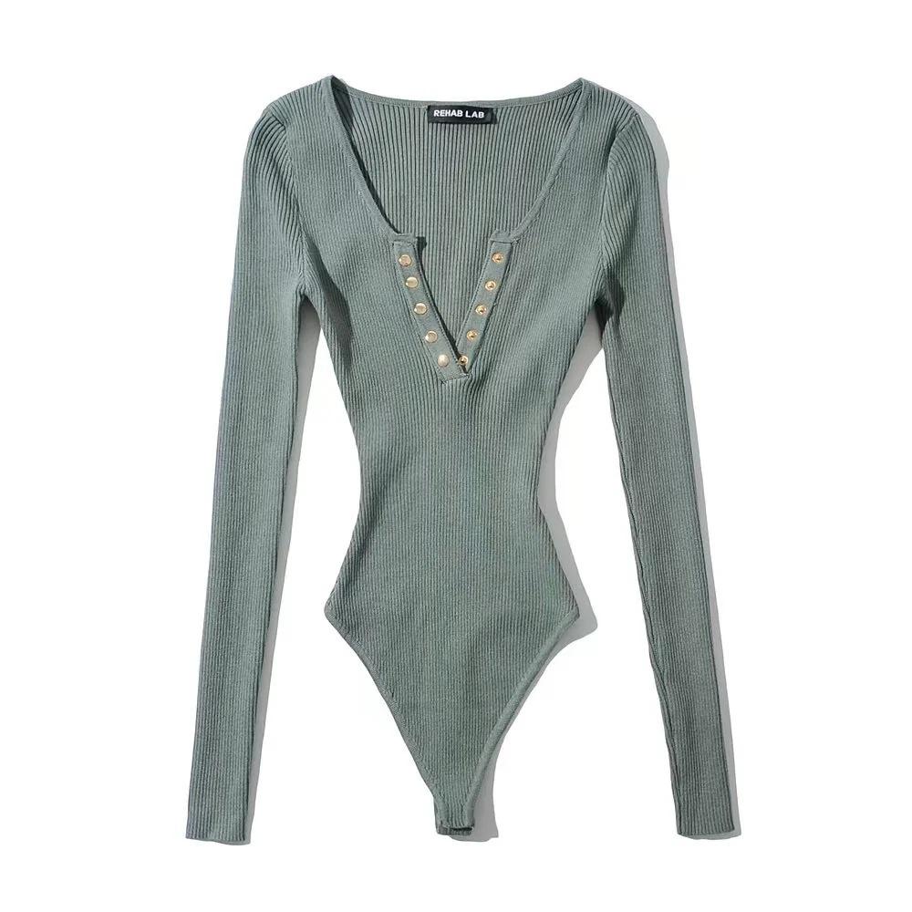 Camiseta de manga larga con cuello en V y hebilla para otoño e invierno, estilo Spice Girl, mono ajustado para mujer, color liso, top sexy a la moda.