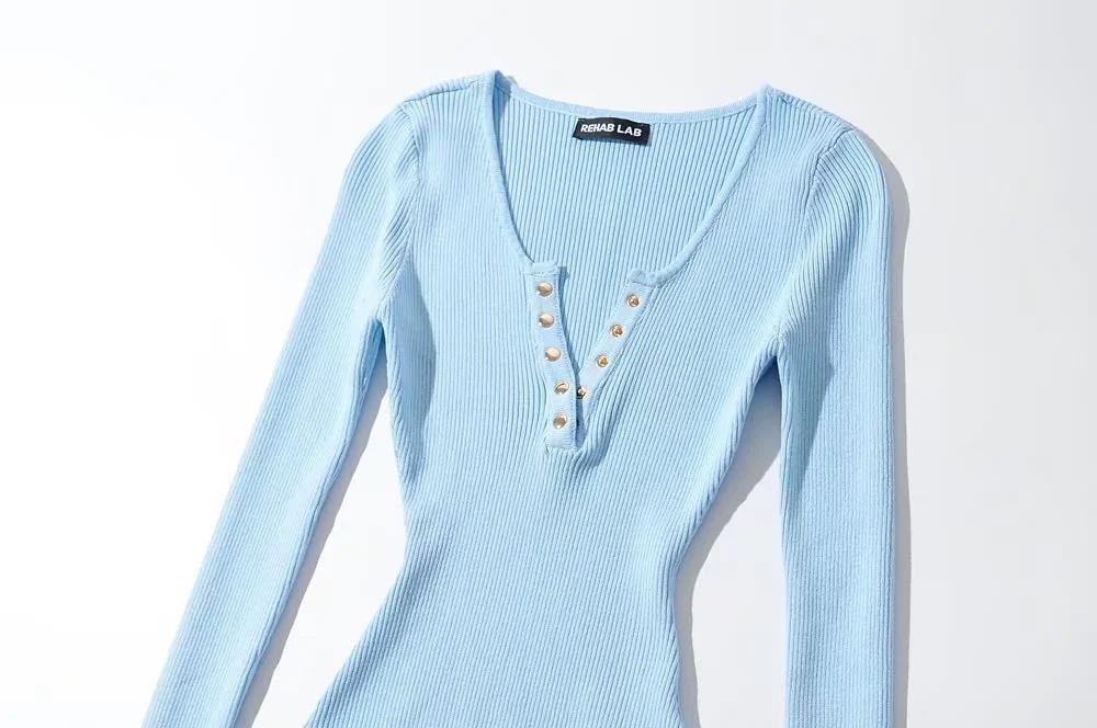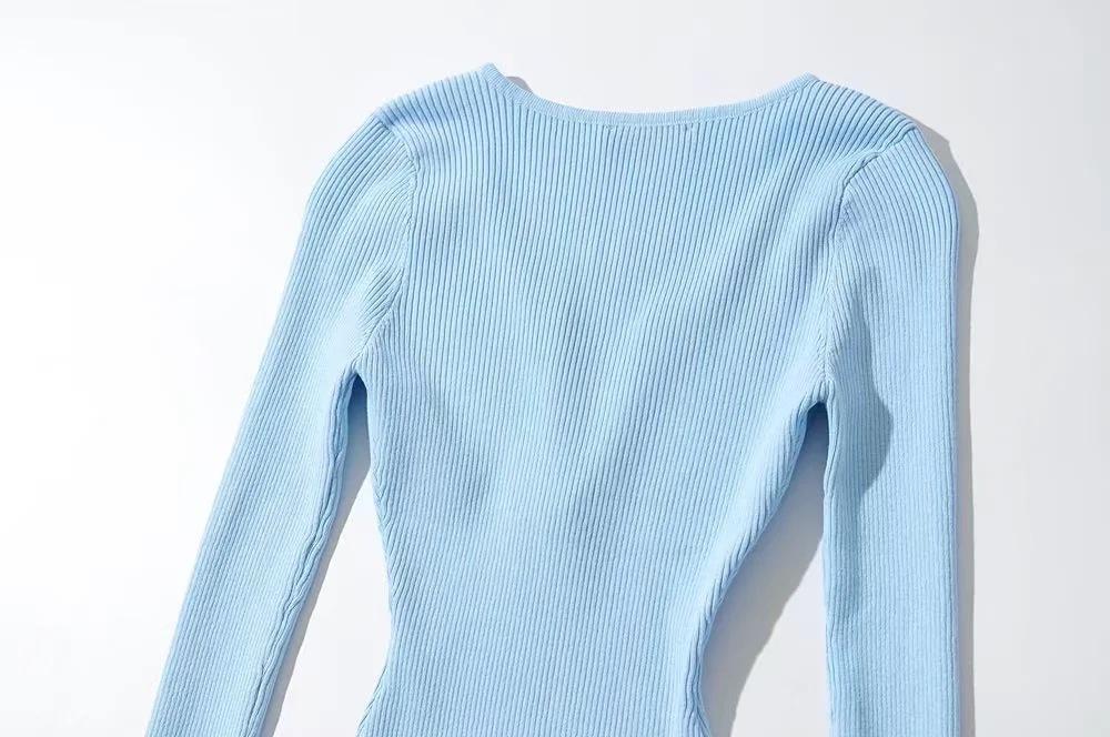 Compra Camiseta de manga larga con cuello en V y hebilla para otoño e invierno, estilo Spice Girl, mono ajustado para mujer, color liso, top sexy a la moda. al por mayor en Joom.pro