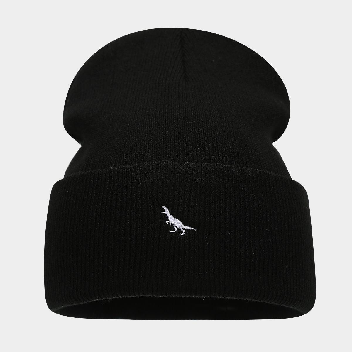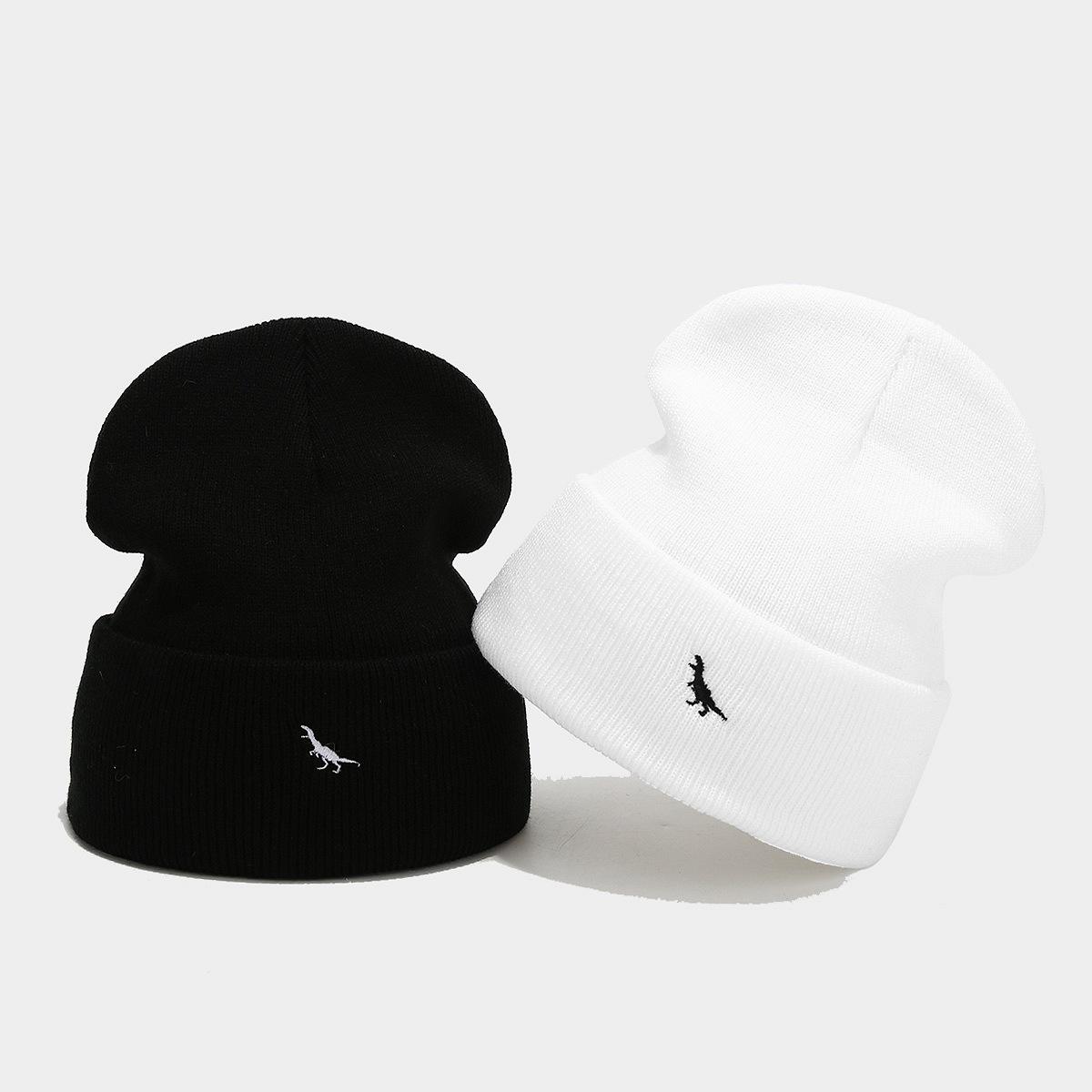 Gorro de lana con bordado de dinosaurio pequeño, superventas en comercio electrónico transfronterizo, para amantes del otoño e invierno, gorro de punto para exteriores, gorro de marca Tide