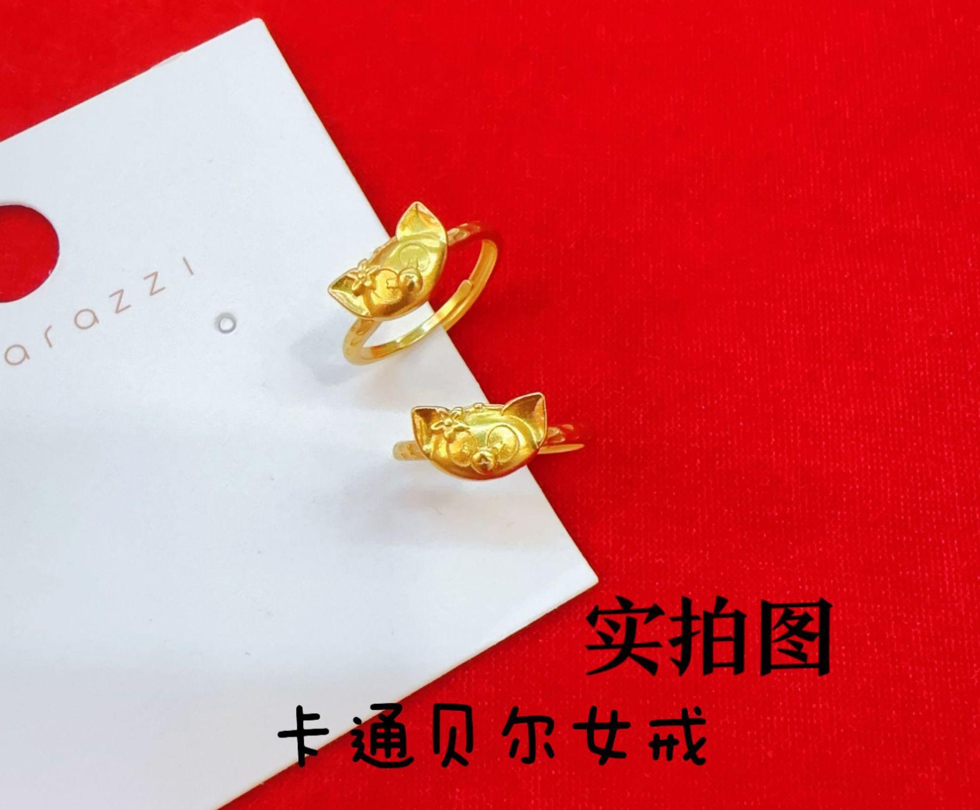 Anillo Abierto de Zorro Pequeño de Dibujos Animados Color Oro para Mujer Imitación Anillo de Oro Arena Vietnamita Pulsera Regalo