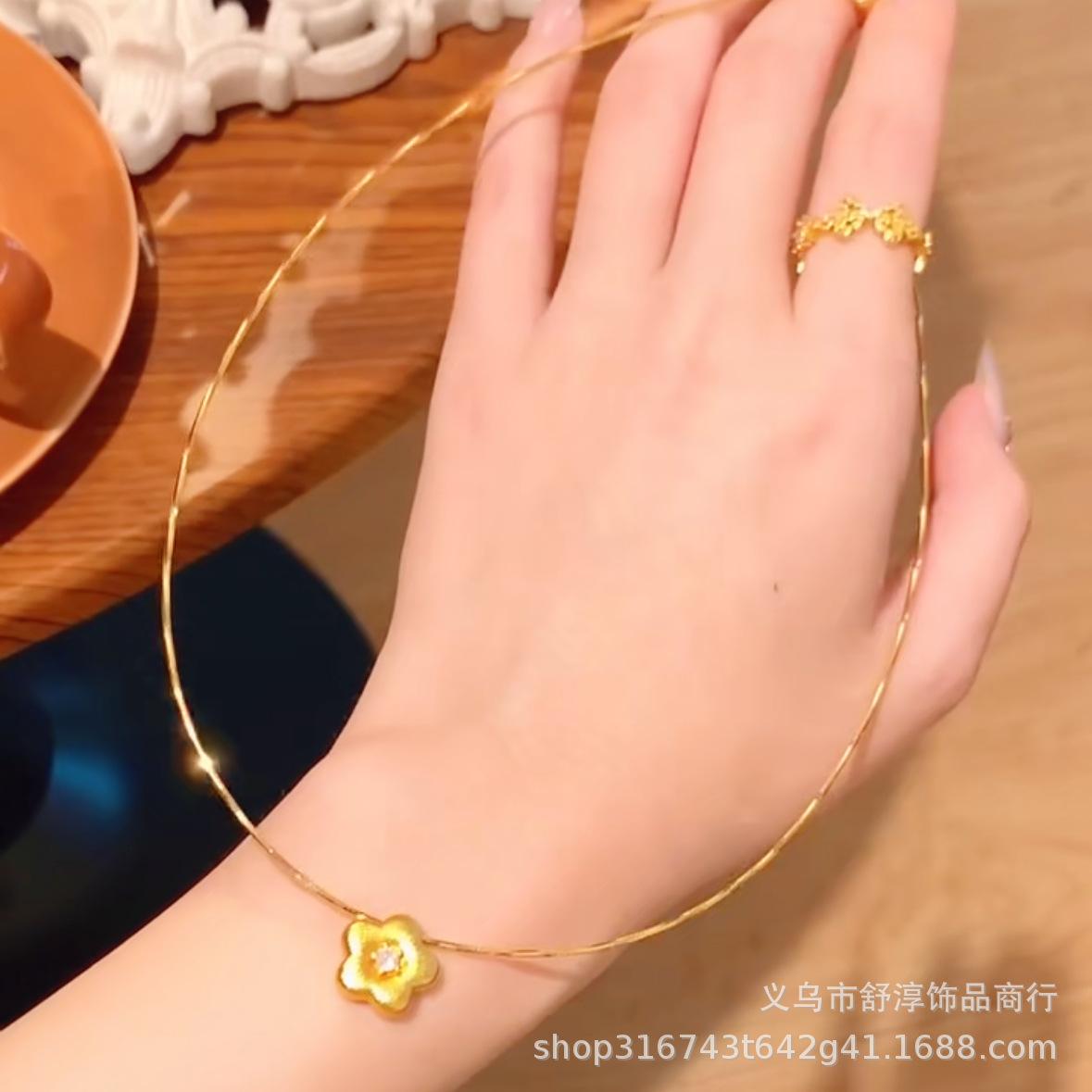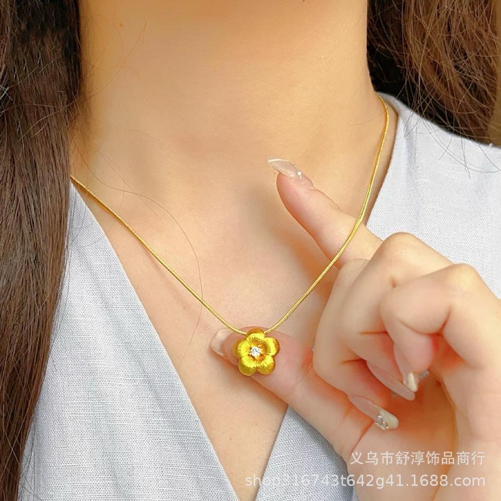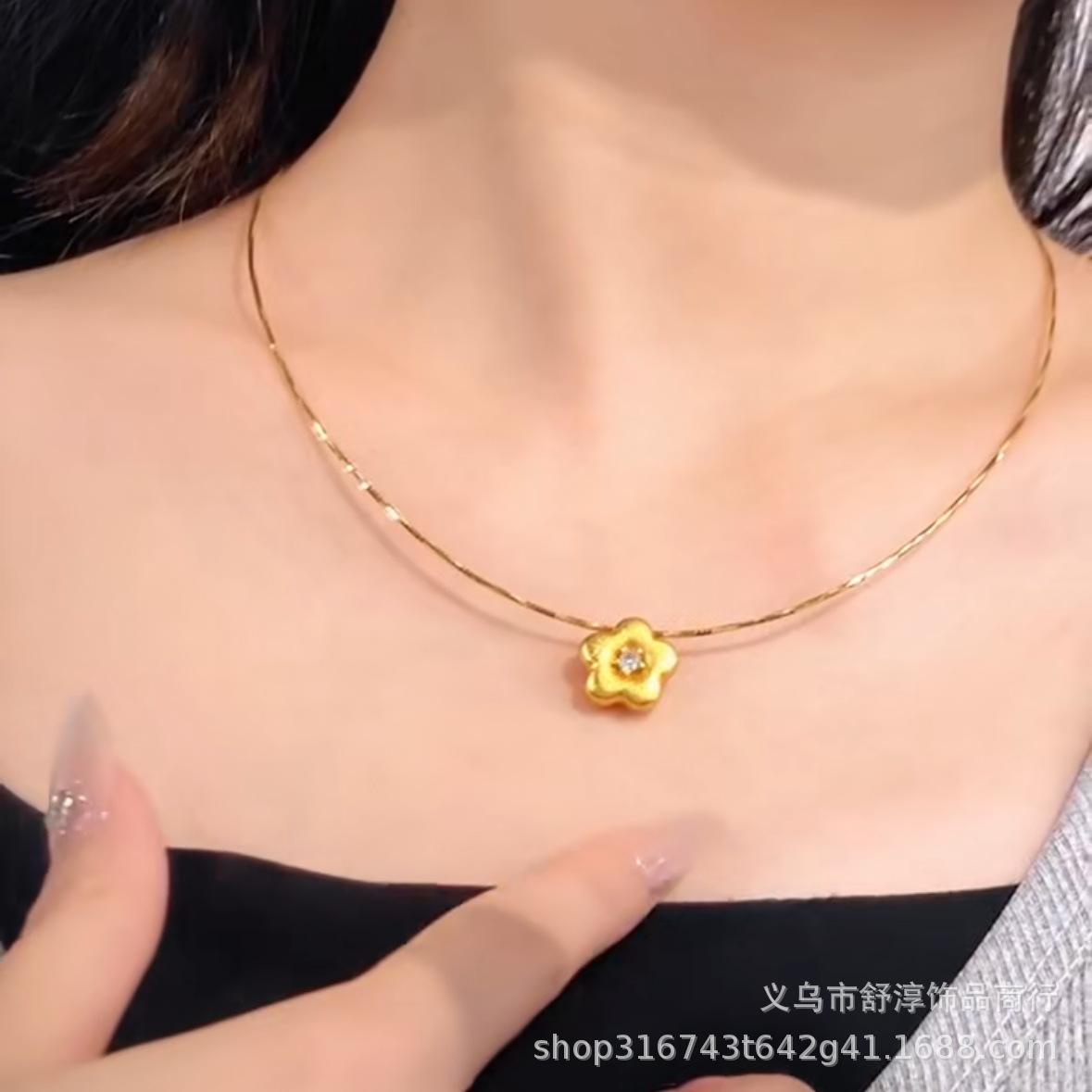 Collar de disco dorado pequeño de color dorado antiguo para mujer, nuevo collar de flor de diamante 2024, colgante de cadena de clavícula al por mayor