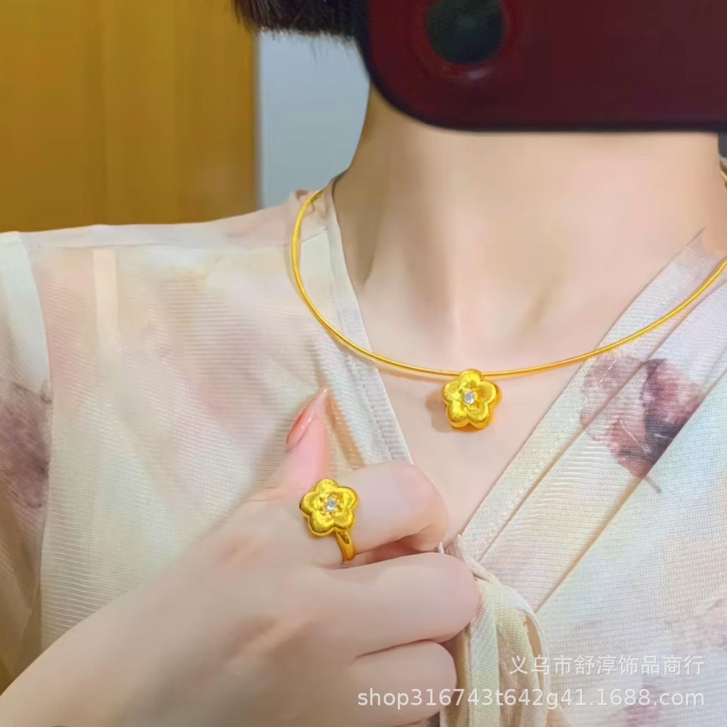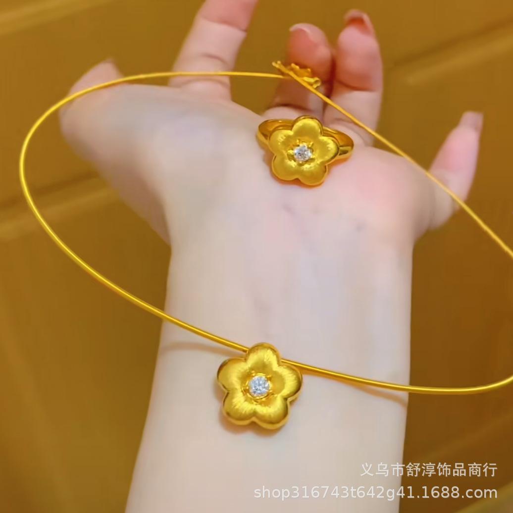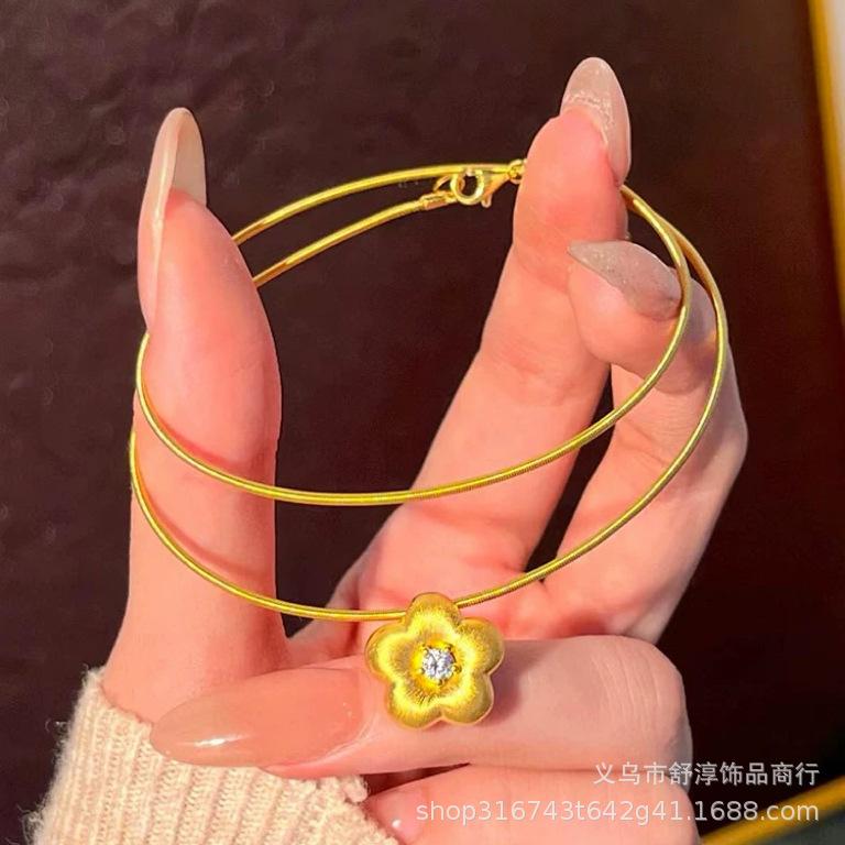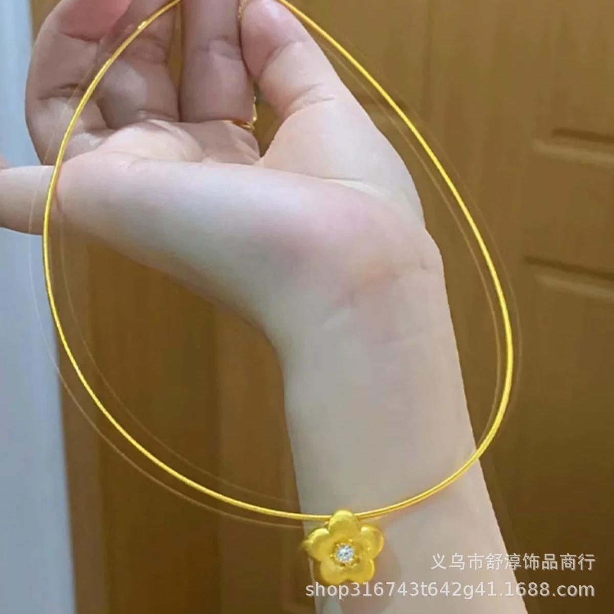 Collar de disco dorado pequeño de color dorado antiguo para mujer, nuevo collar de flor de diamante 2024, colgante de cadena de clavícula al por mayor